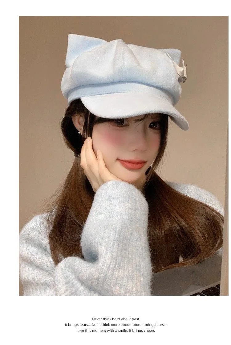 TAVIMART - Blue Ladies Caps or Hats Y2K Cap Beret for Women Cat Ear Cap for Girls Beret Female Spring Y2K Accessories Funny Hat Y2K Cap