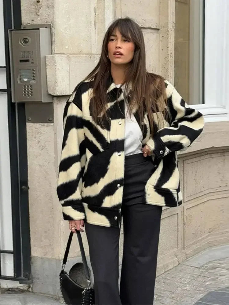 TAVIMART - Women Elegant Zebra Printed Single Breasted Jacket Fashion Lapel Long Sleeves Loose Coat Autumn Chic Lady Commuting Outerwear
