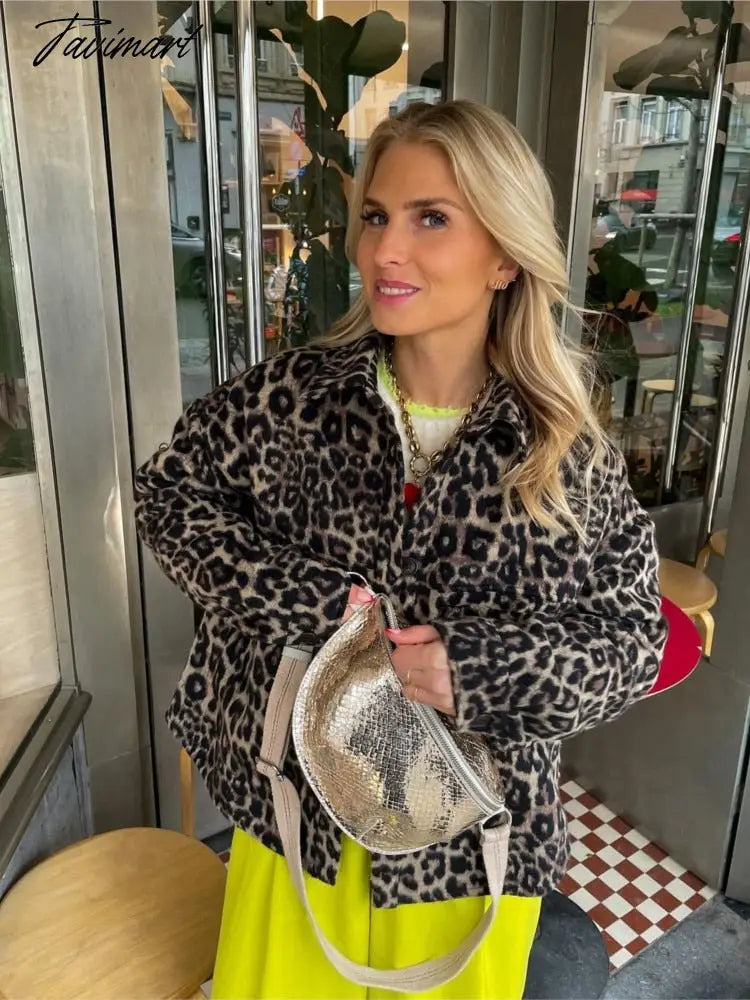 Tavimart Chic Leopard Printed Women's Cotton Coat Fashion Lapel Long Sleeve Single Breasted Jacket Autumn Winter Lady Streetwear