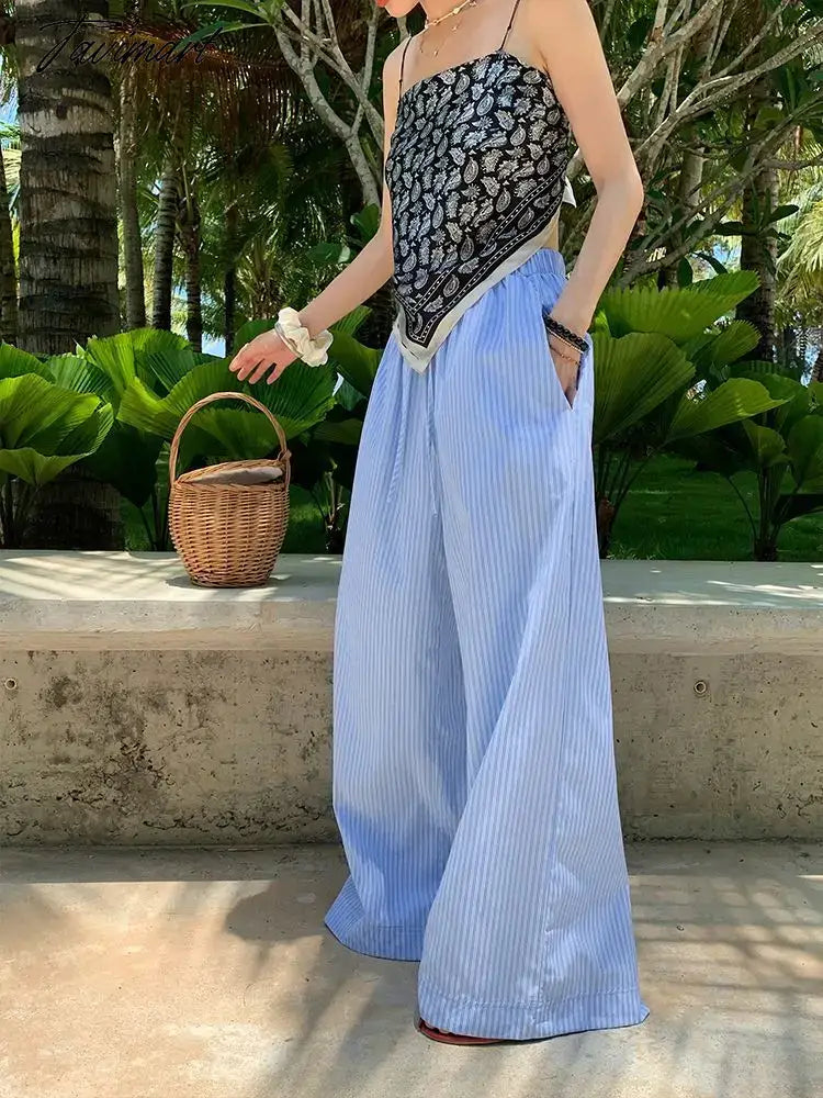 TAVIMART - Women's High Waist Vertical Stripe Wide Leg Pants Summer Autumn New Chic Fashion Street Young Girl Loose Straight Leg Trousers