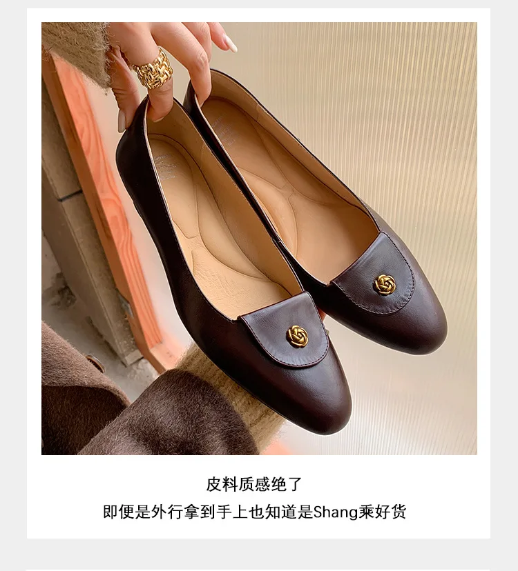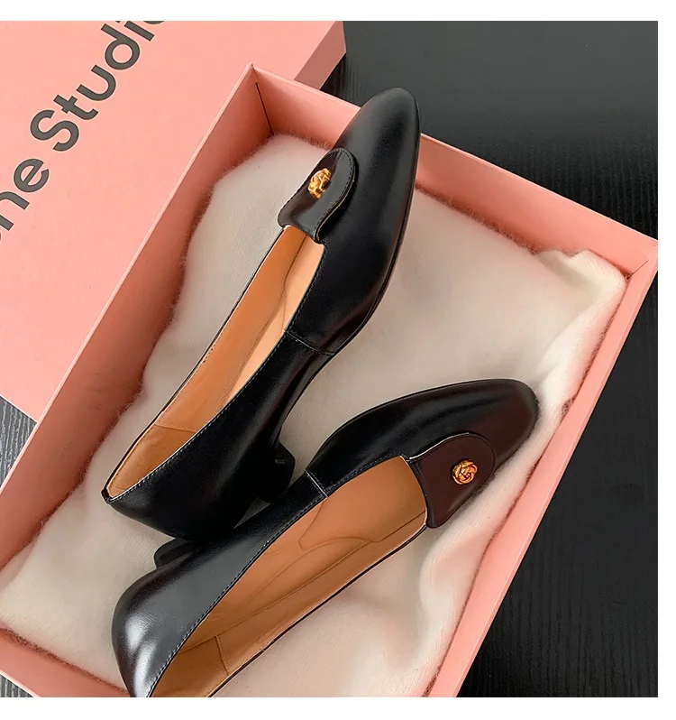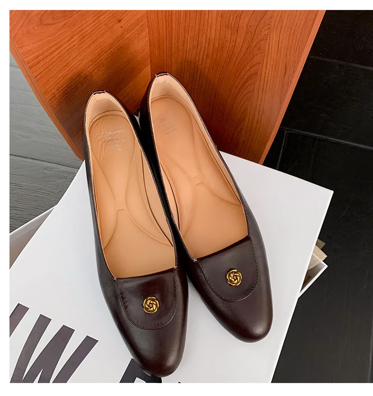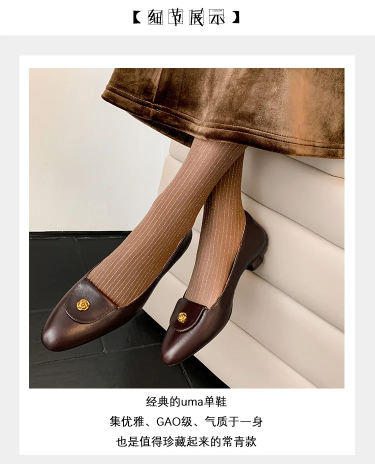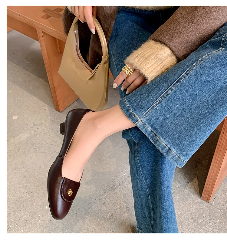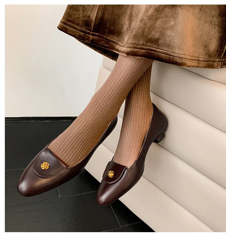TAVIMART - Fashion Elegant Spring Women's Pumps Shoes Genuine Leather Cowhide Slip On Low Heels Ladies Elegant Pointed Toe Mary Jane Shoes