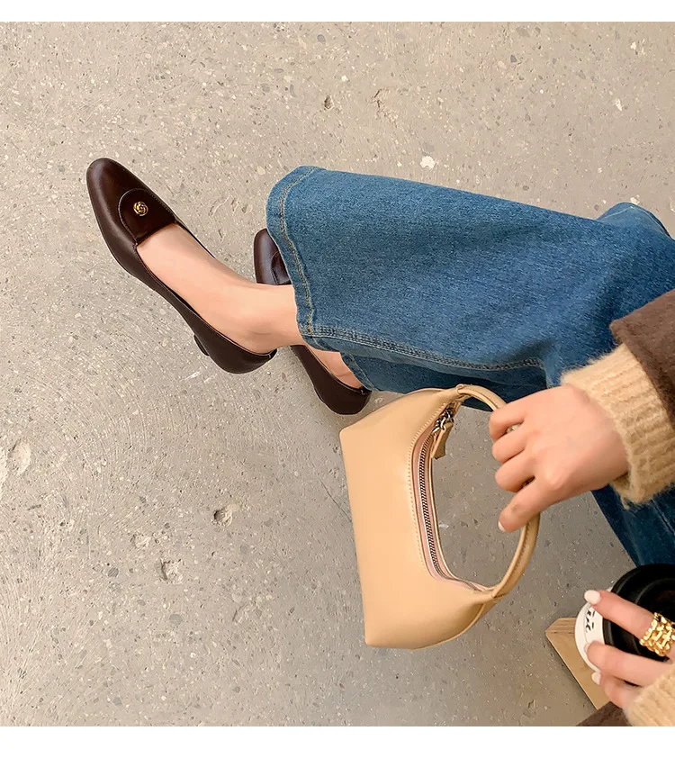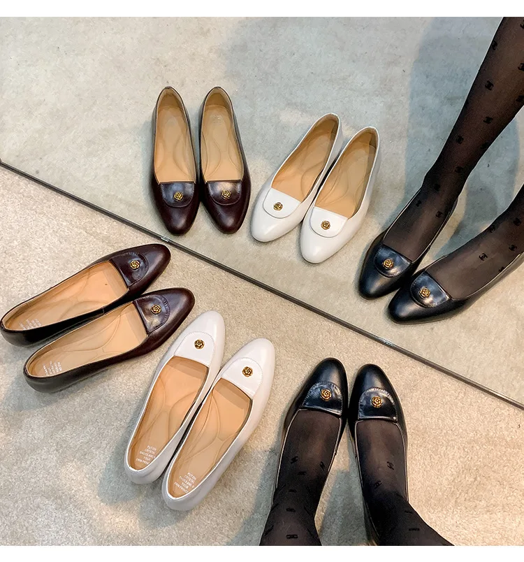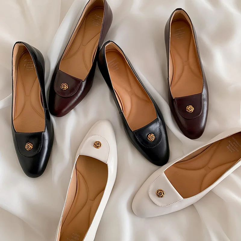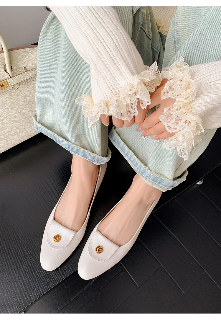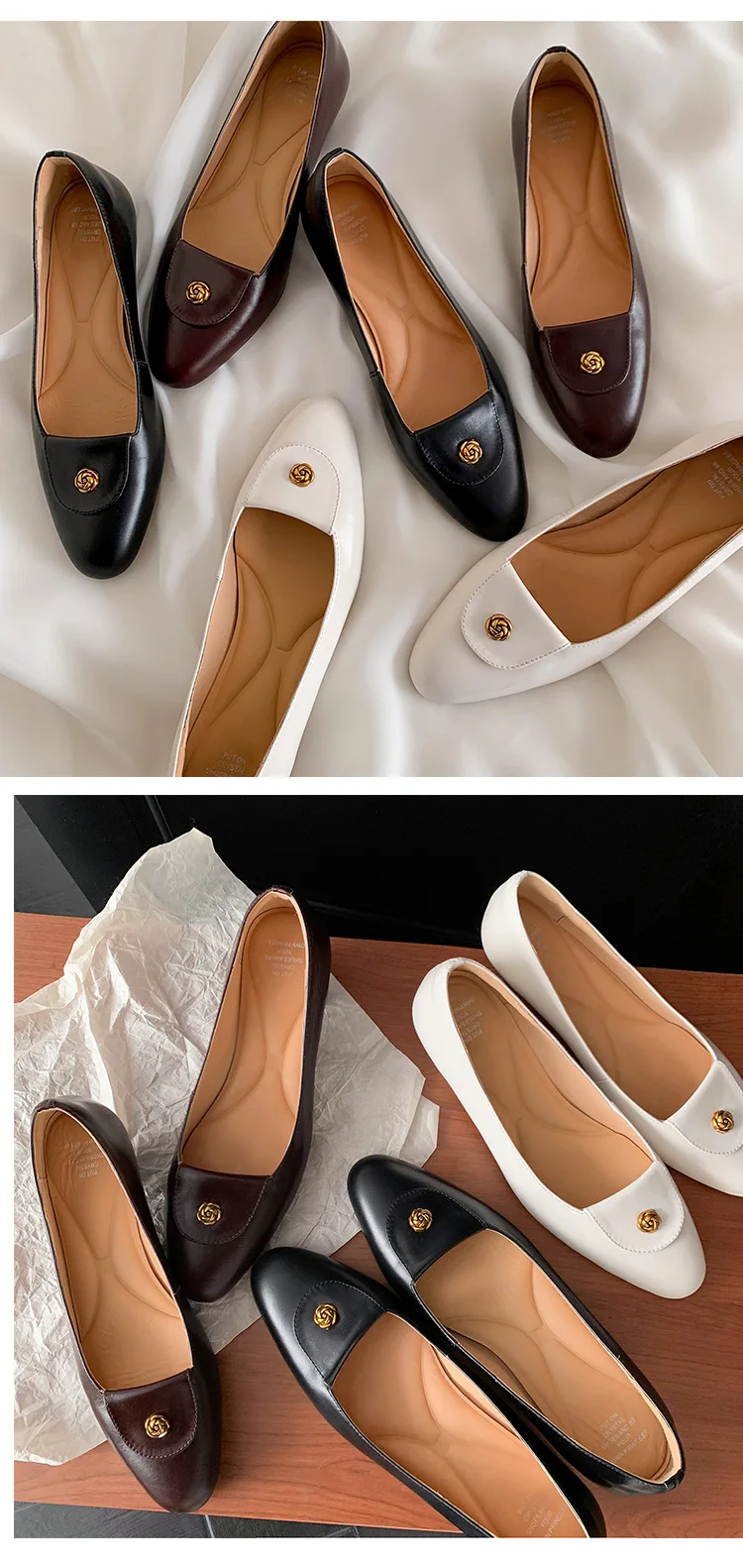 TAVIMART - Fashion Elegant Spring Women's Pumps Shoes Genuine Leather Cowhide Slip On Low Heels Ladies Elegant Pointed Toe Mary Jane Shoes
