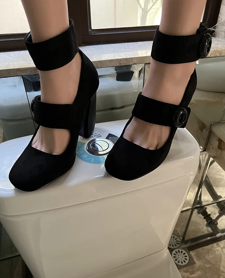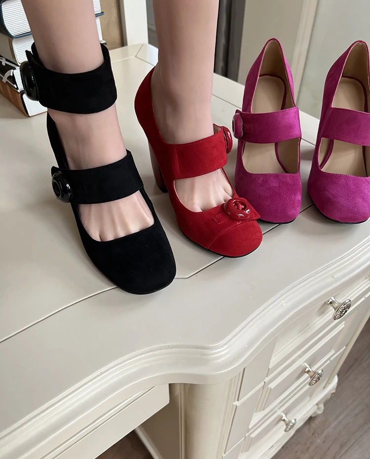 TAVIMART - High Heels Platform Pumps Mujer 2024 Spring New Fashion Buckle Solid Girl Sexy Black Shoes Woman PU Leather Shoes Femme