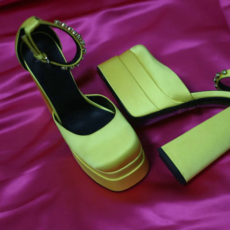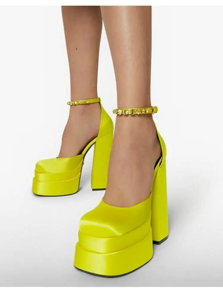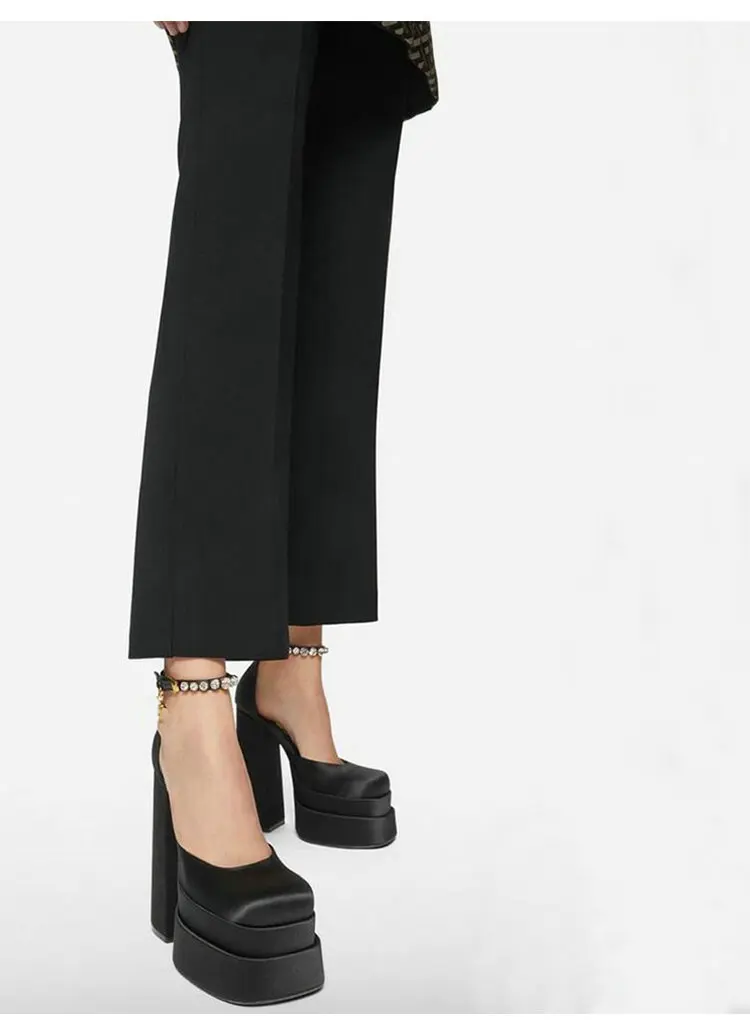 TAVIMART - High Quality Satin Women Super High Heels Square Toe Platform Ankle Strap Party Wedding Shoes Mary Jane Chunky Heel Shoes