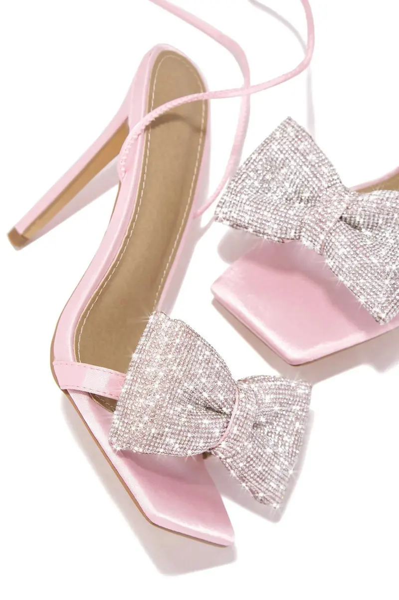 TAVIMART - New Fashion High-heeled Cross Strap Ttiletto Sandals Rhine-drill Bow Square Head Stiletto Women's S
