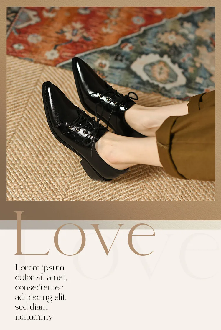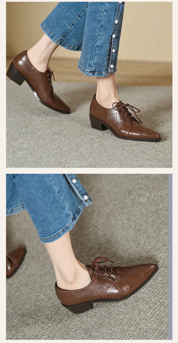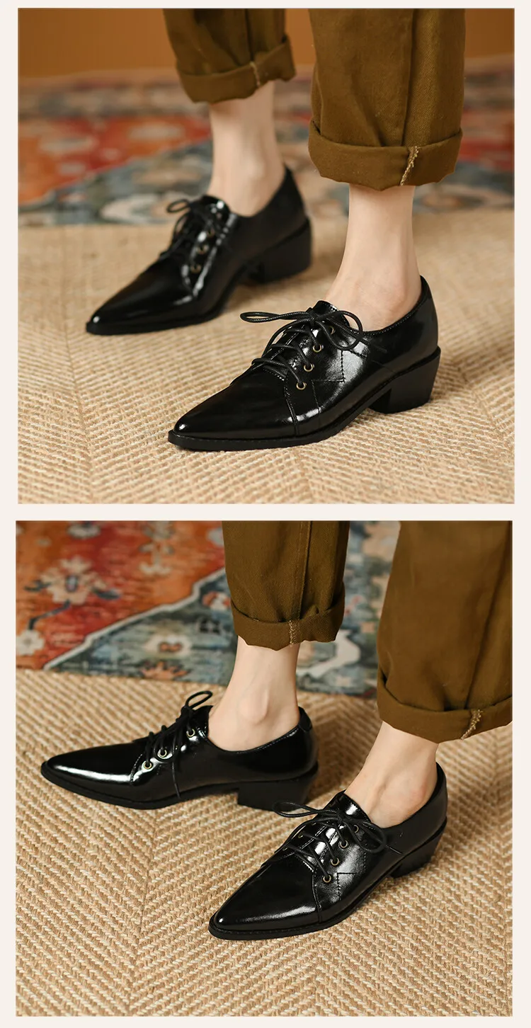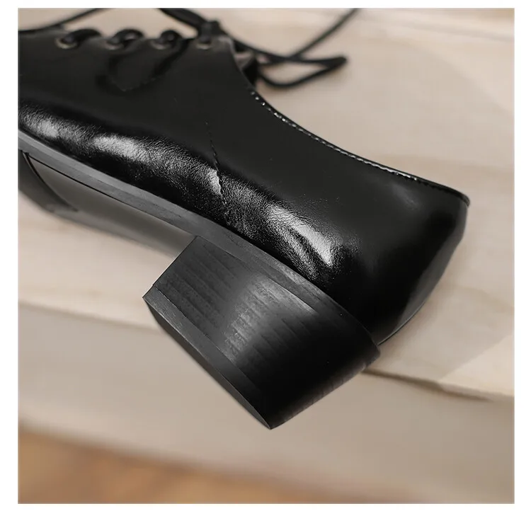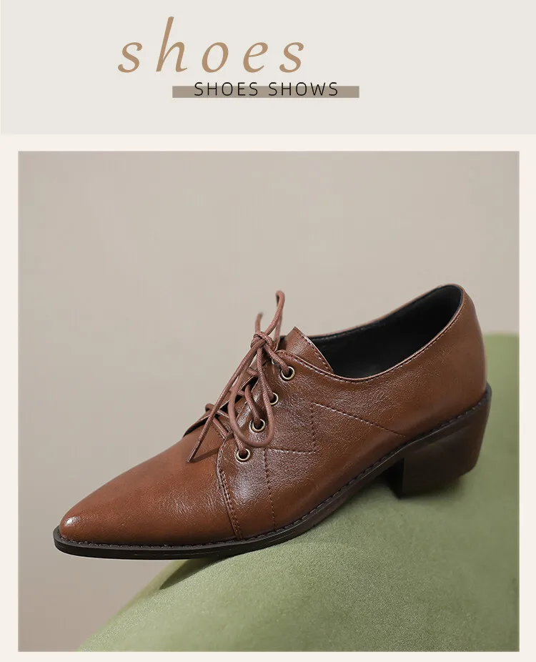 TAVIMART - NEW Spring/Autumn Women Pumps Split Leather Shoes for Women Pointed Toe Chunky Heel Shoes Casual Black Lace-up Handmade Shoes