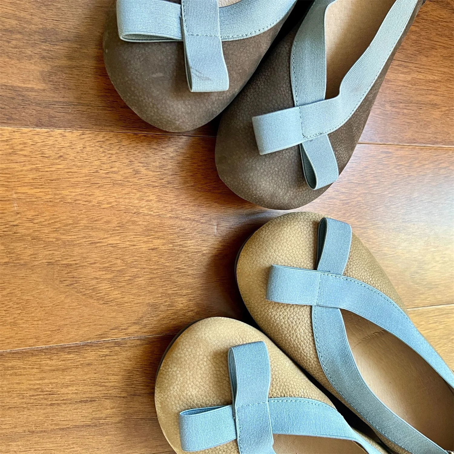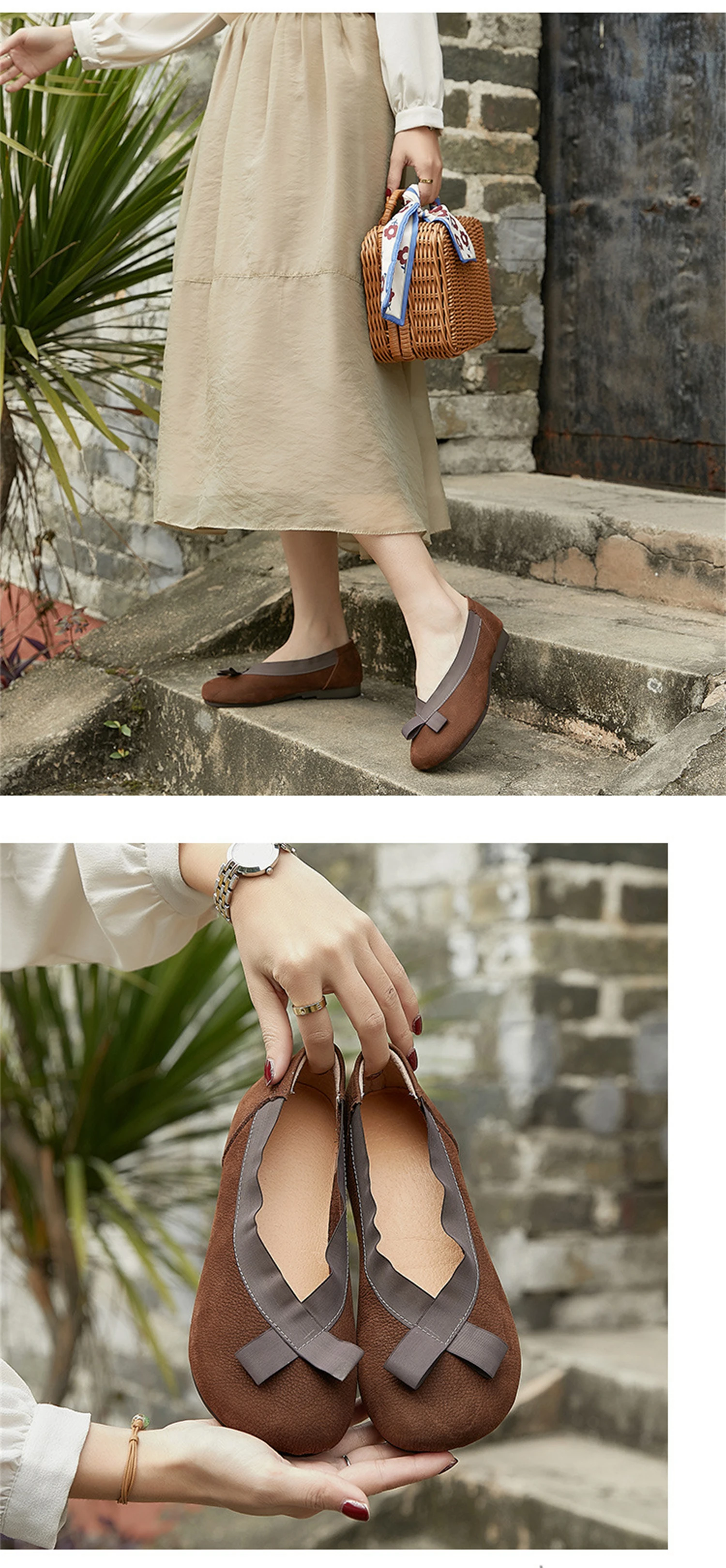 TAVIMART - Pea Shoes Genuine Leather Soft Sole Brown Retro Wide Toe Slip-On Mommy Flats One Pedal Slip-on Flat New Women's Shoes