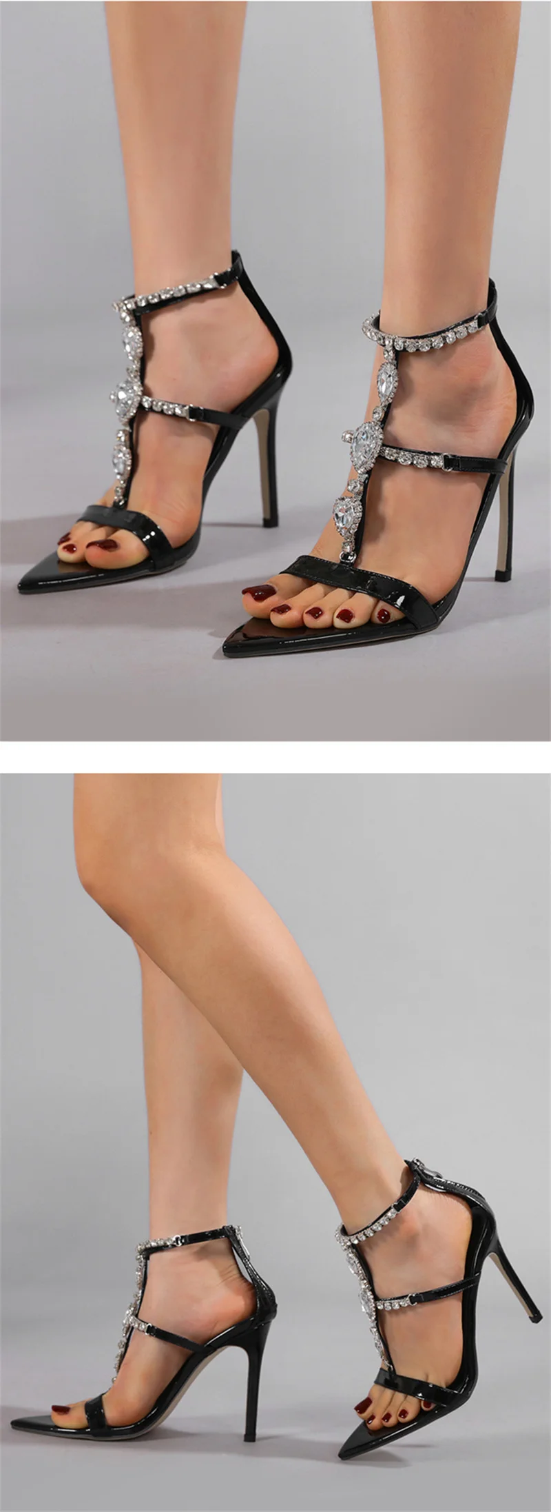 TAVIMART - Sexy Zip Cover Strap Women 10.5CM Stiletto Sandals Fashion Rhinestone Narrow Band Designer High Heels Wedding Banquet Shoe