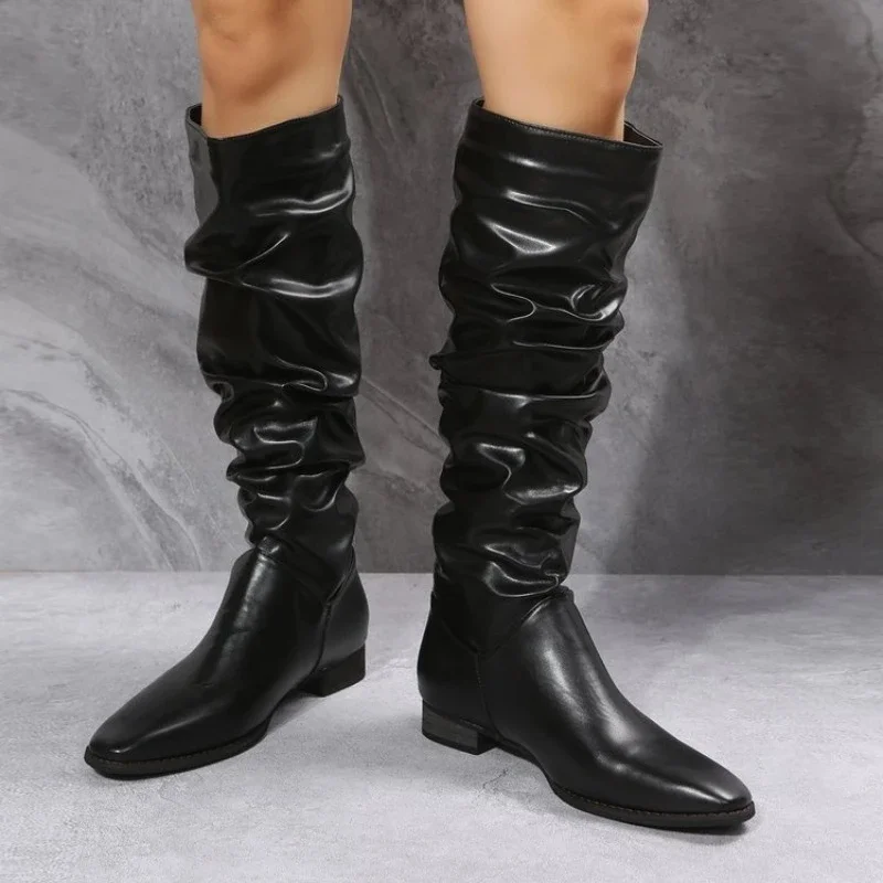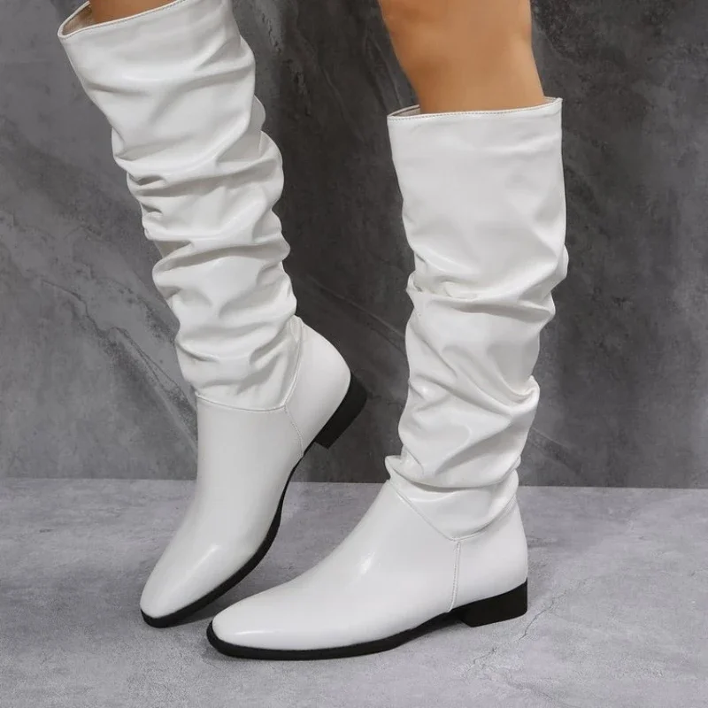 TAVIMART - Shoes for Women Spring Knee High Boots Red Black White Tall Boots Woman Pleated Low Heel Casual Leather Female Long Shoes