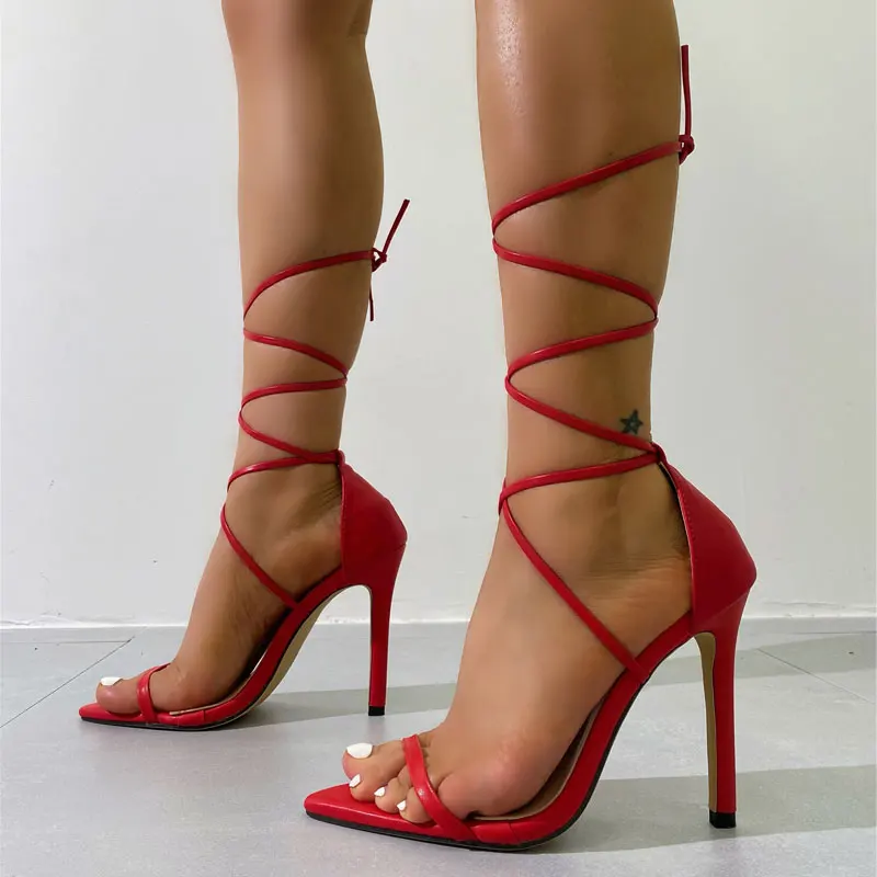 TAVIMART - Summer Narrow Band Designer Women Sandals Cross-Tie Thin High Heels Ankle Strap Gladiator Sandals Fashion Ladies Party Dress Sho