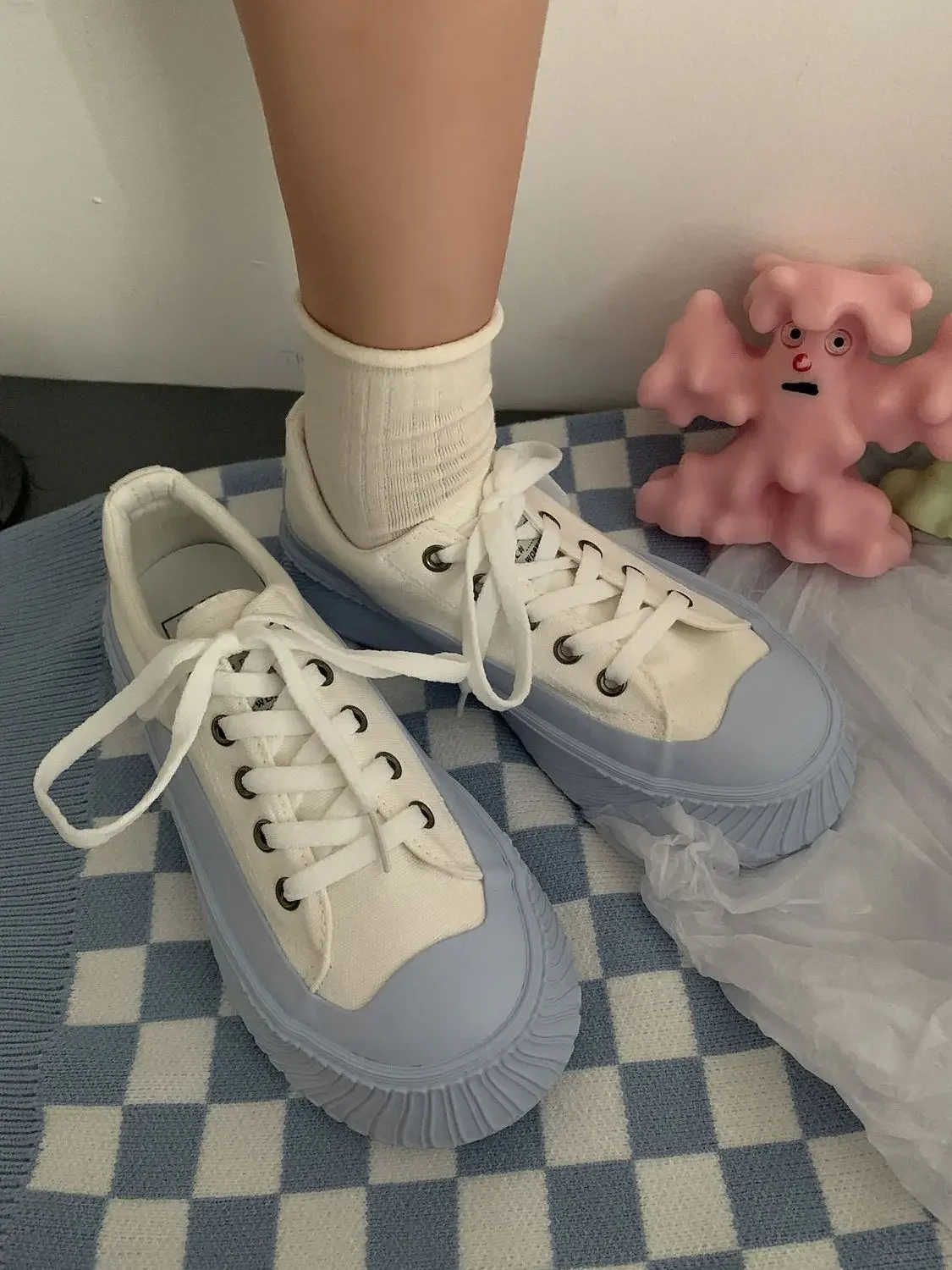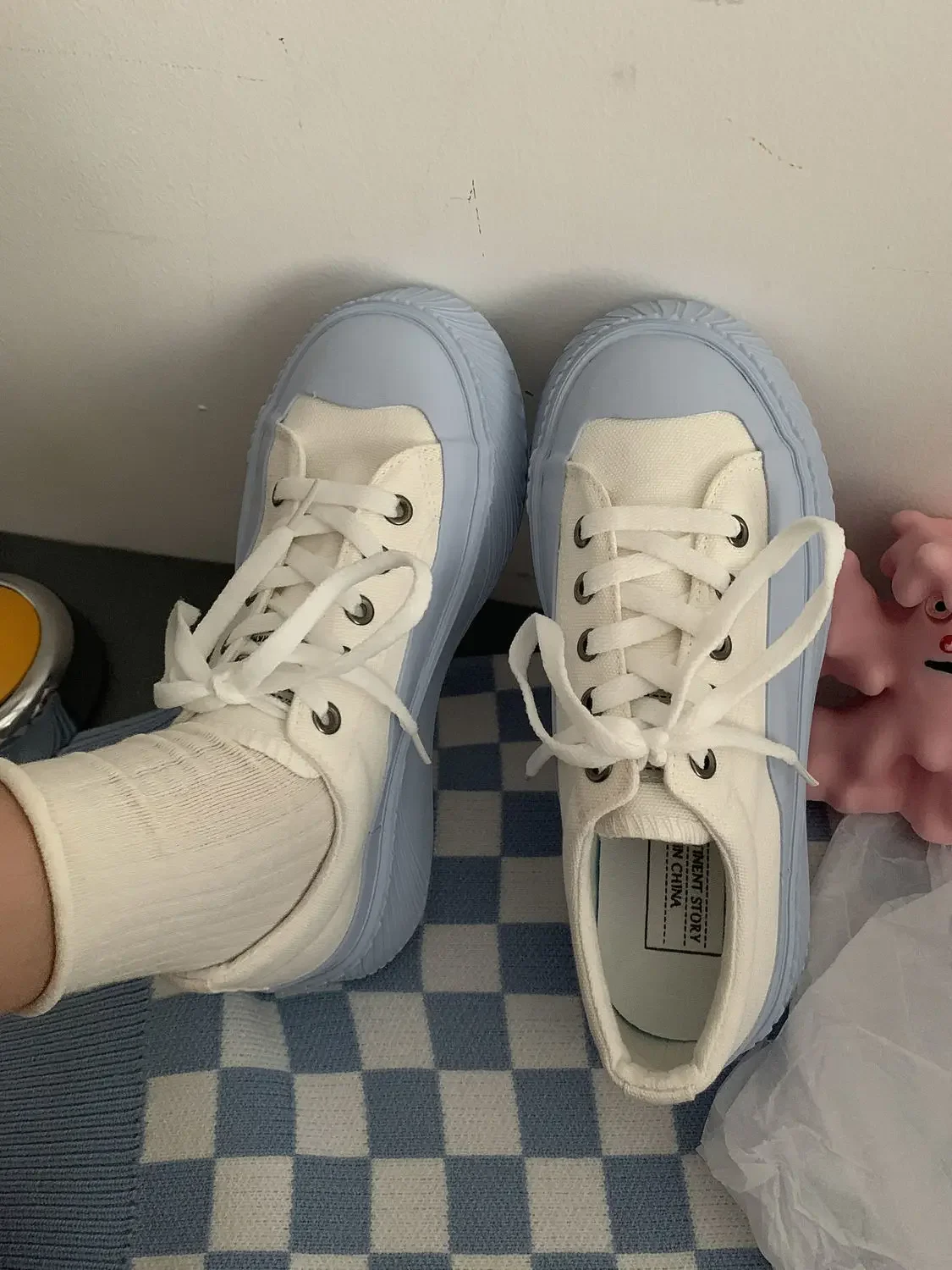 TAVIMART - Whit Women's Shoes High on Platform Female Footwear Canvas Designer Quality Urban Vulcanized for New in Trends Cheap Korean