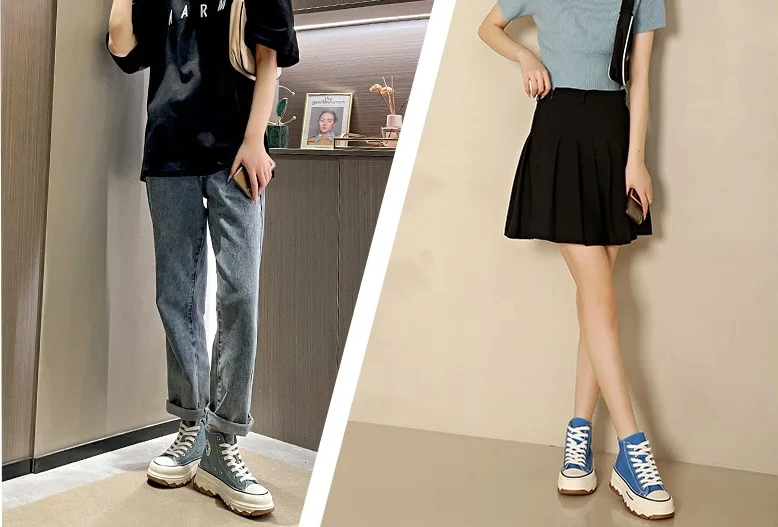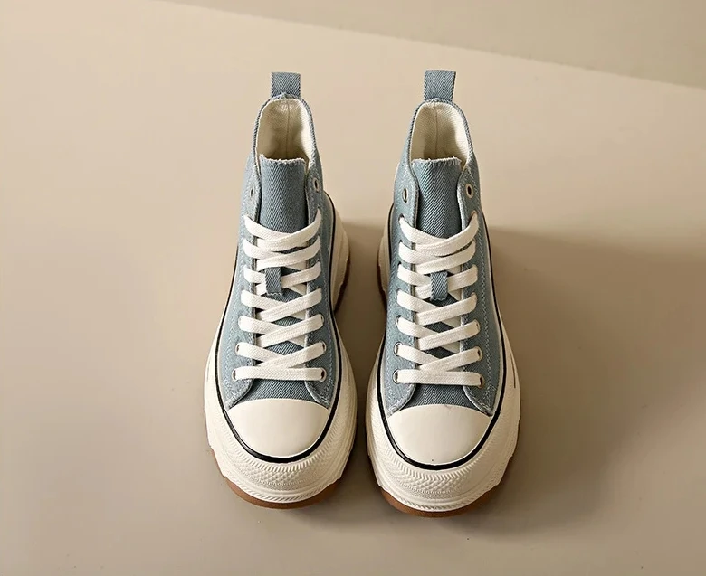 TAVIMART - Women Canvas Shoes High Top Vulcanize Shoes Lace Up Casual Sneakers Plarform Height Increasing Girl Shoes Female Ankle Boots