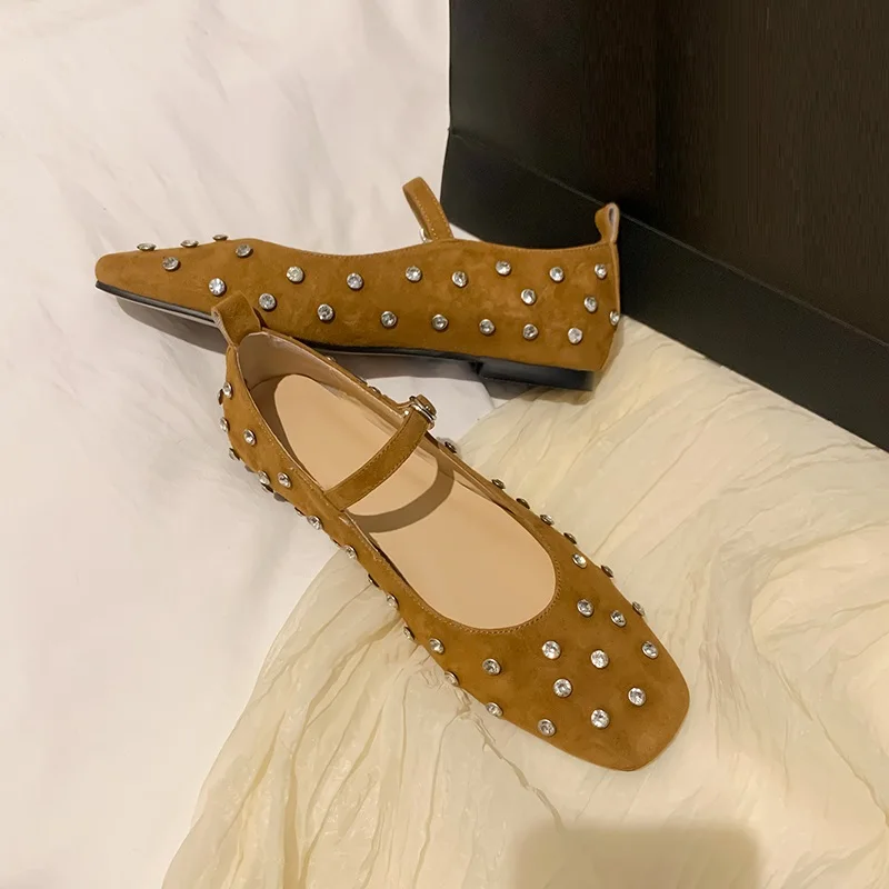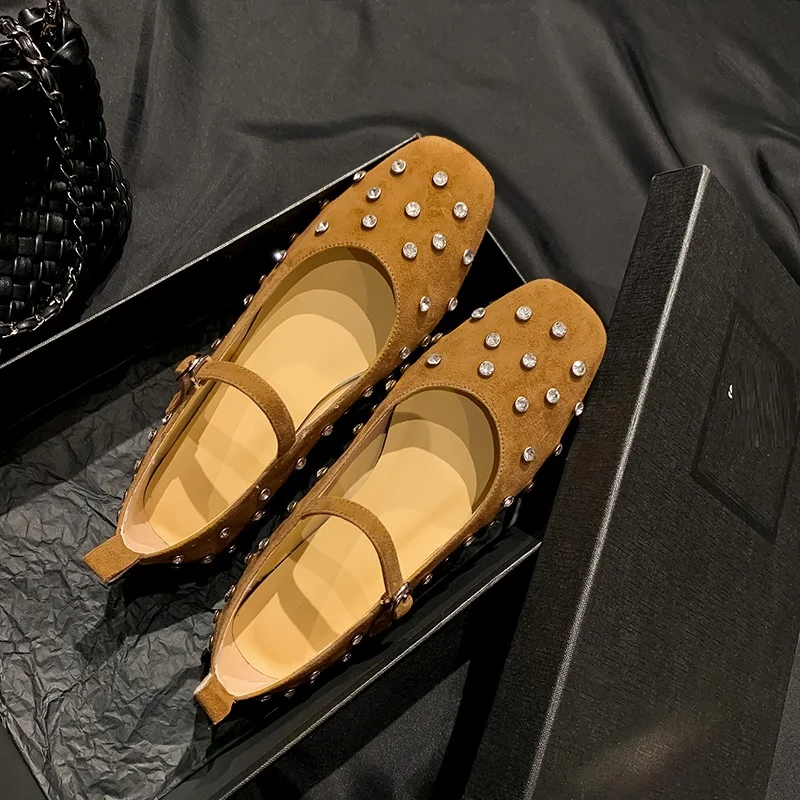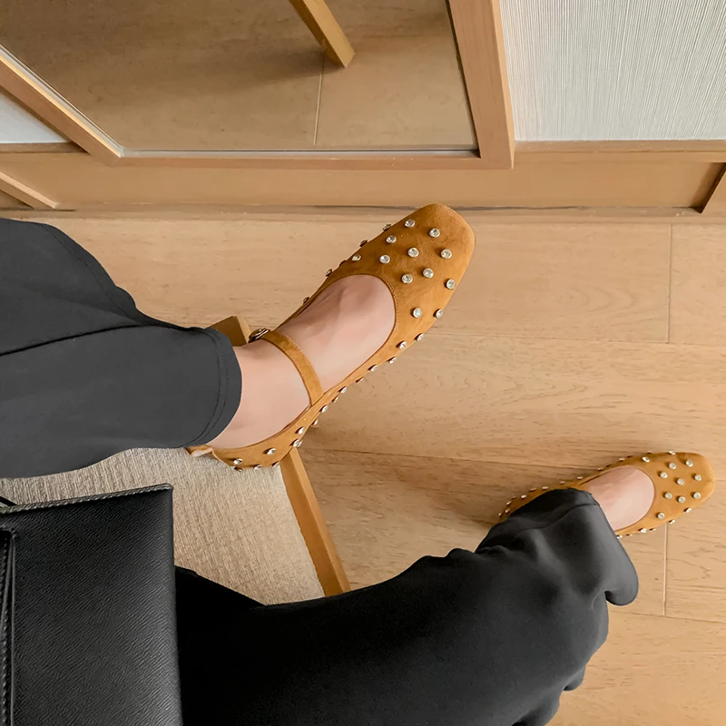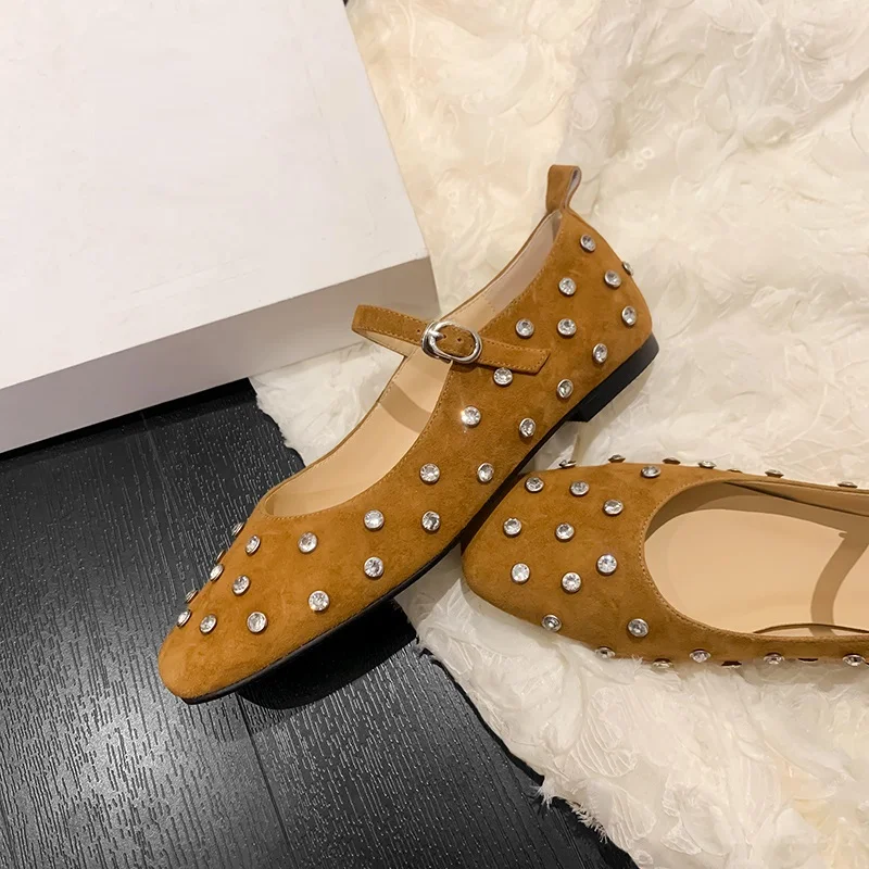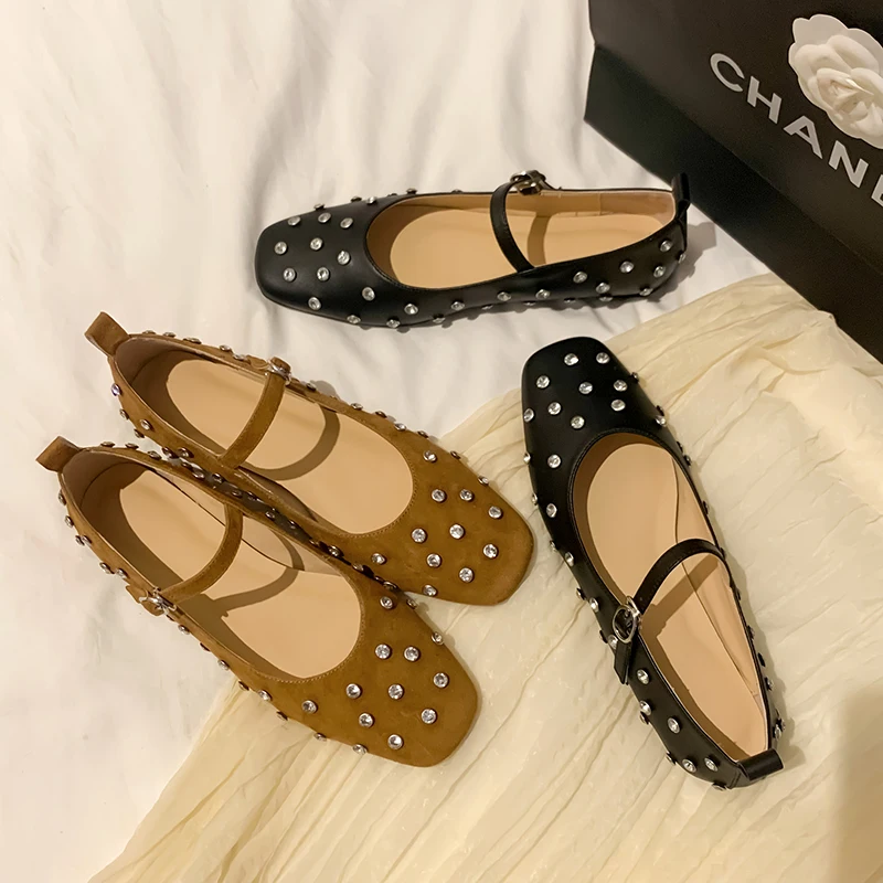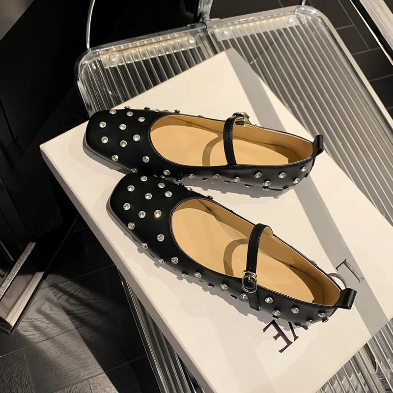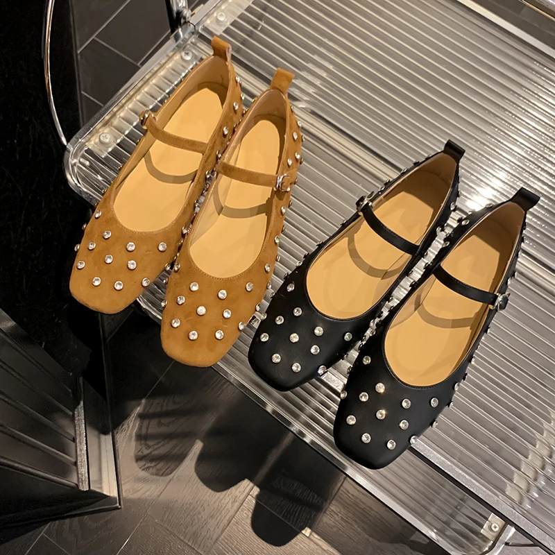 TAVIMART - Women Flats Genuine Leather s Mary Jane Flats Shoes Woman Buckles Spring Summer Fashion New Rivets Soft Leather Shoe