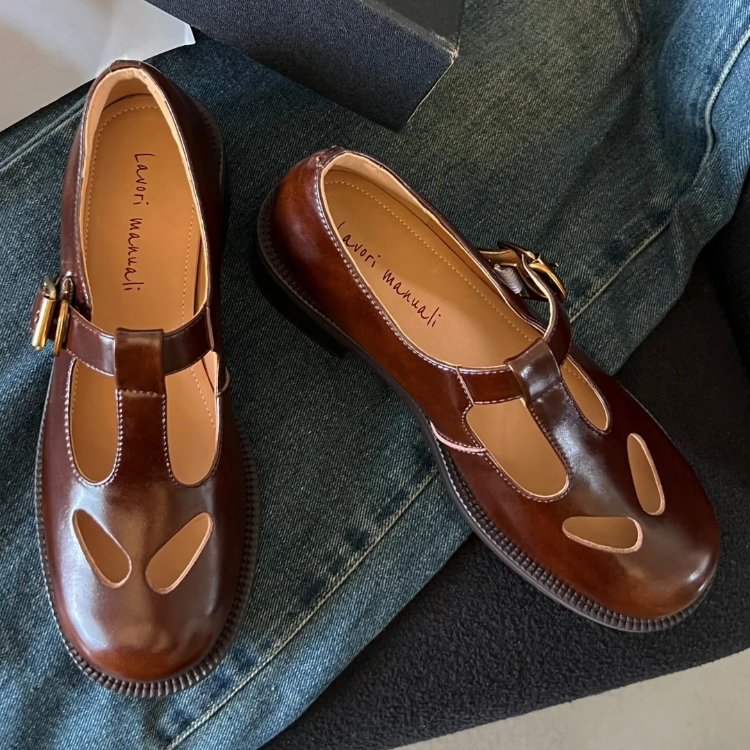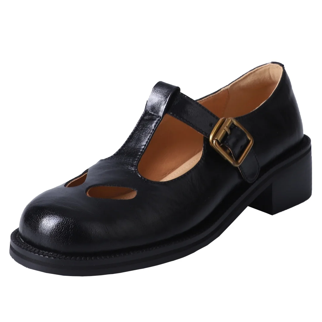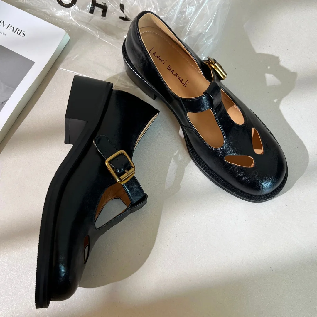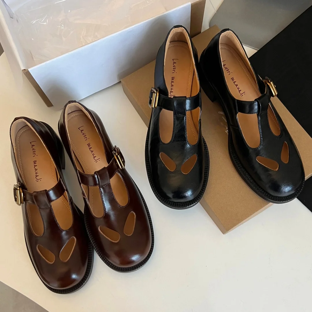 TAVIMART - Women's genuine leather hollow-out t-strap flats oxfords British style high quality soft comfortable female moccasins shoes sale