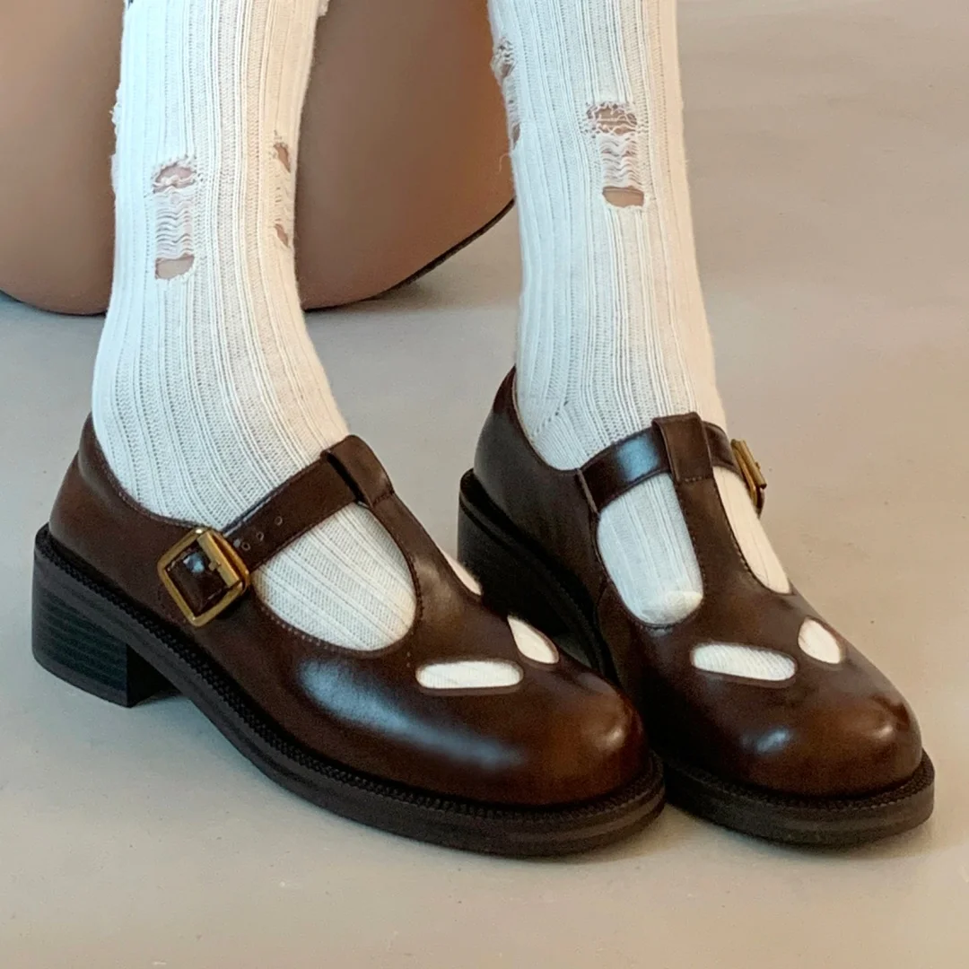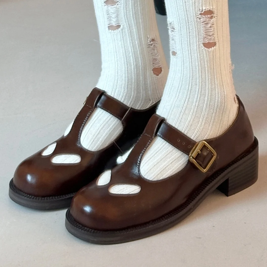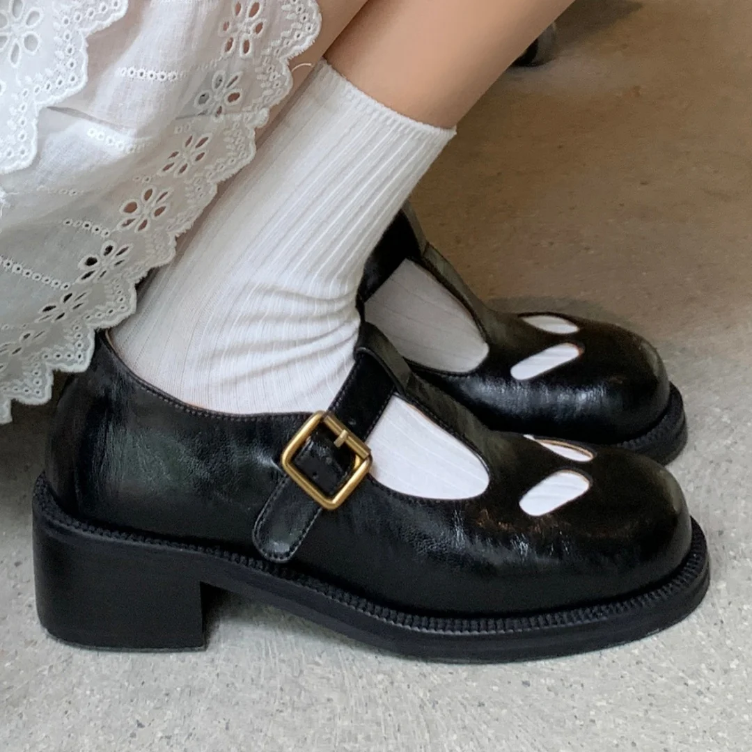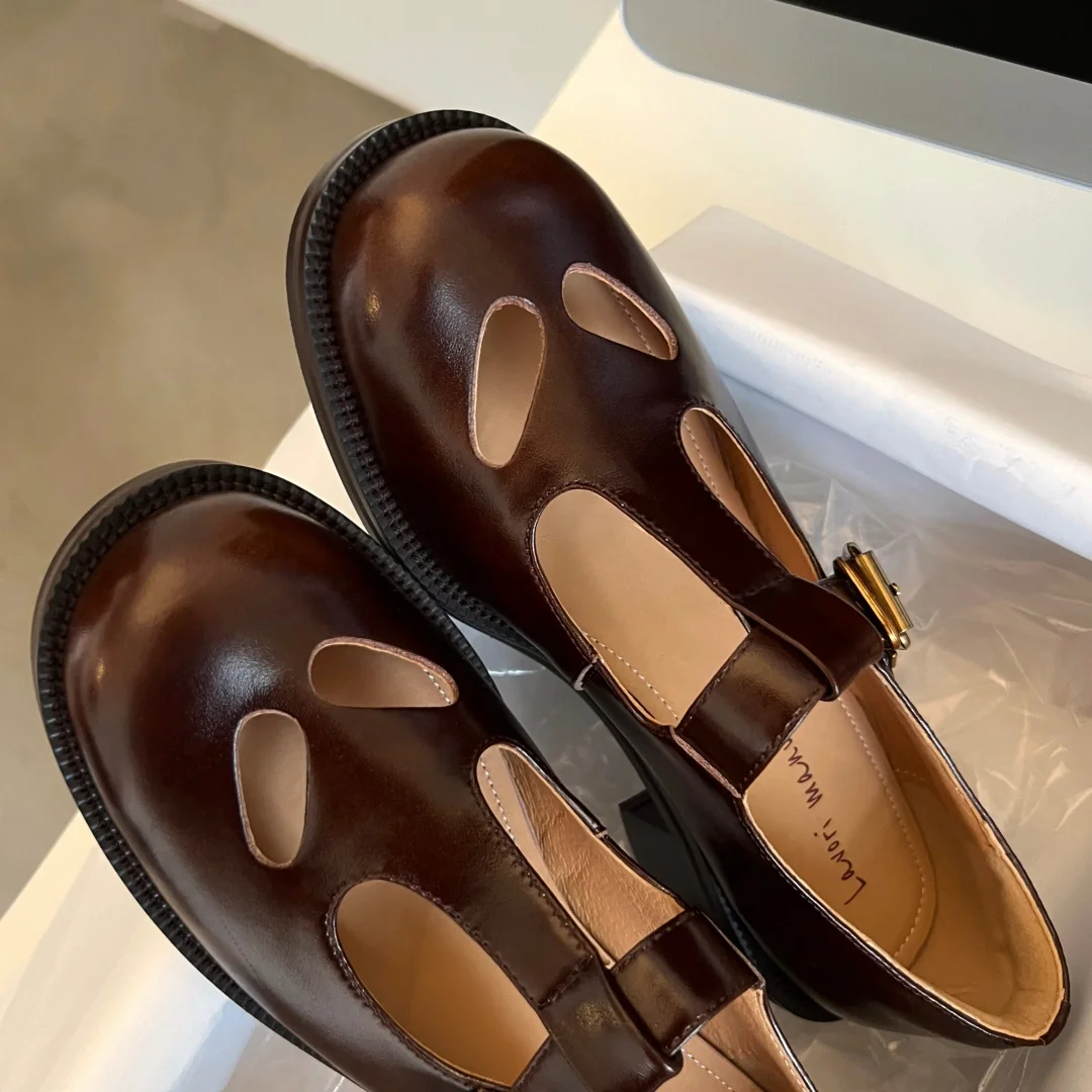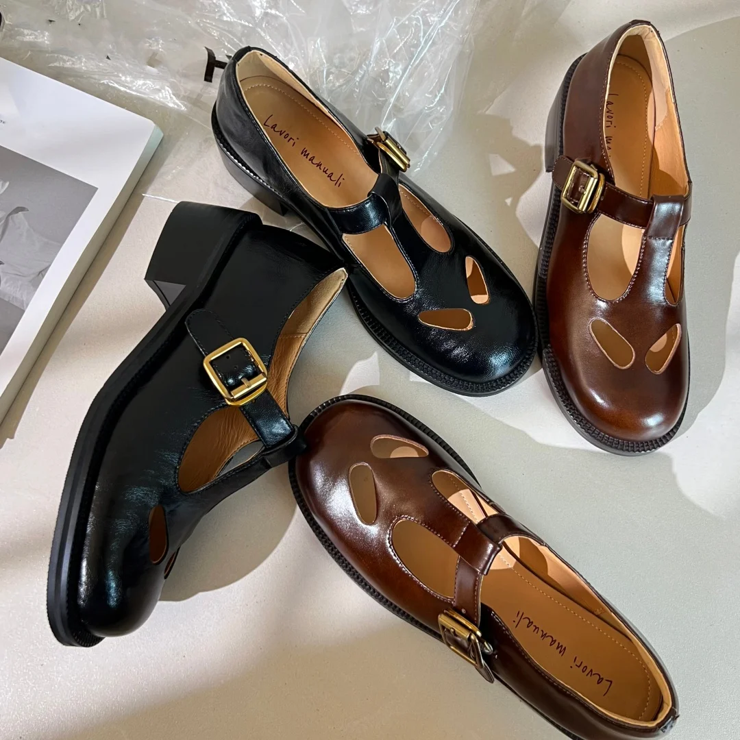 TAVIMART - Women's genuine leather hollow-out t-strap flats oxfords British style high quality soft comfortable female moccasins shoes sale