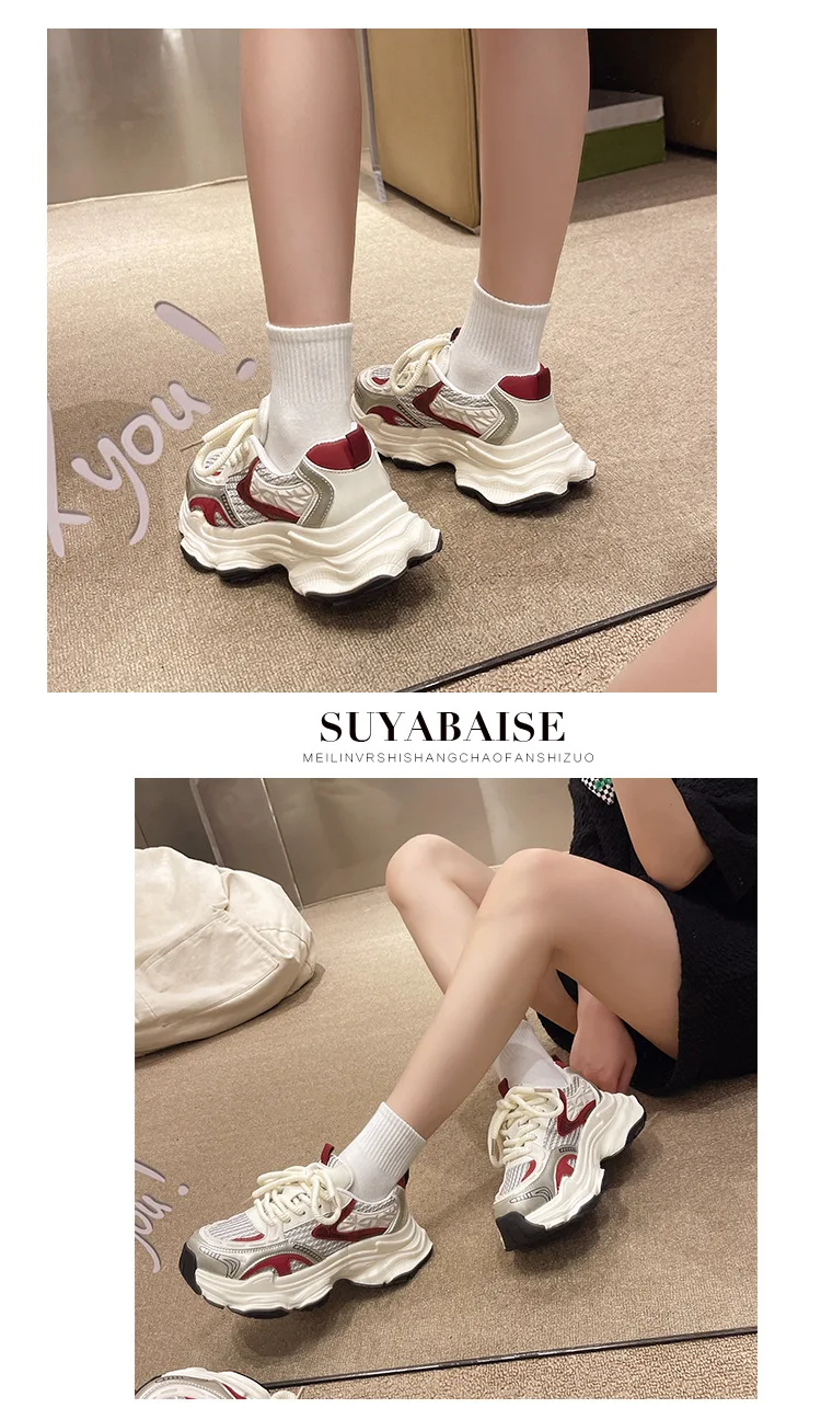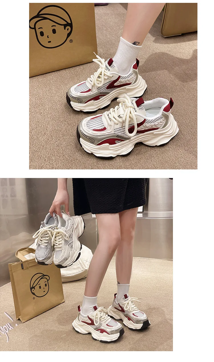 TAVIMART - Women's New Running Shoes With Round Toe Straps Sneakers Retro Breathable Mesh Casual Shoes Chunky Casual Footwear Size 35-40