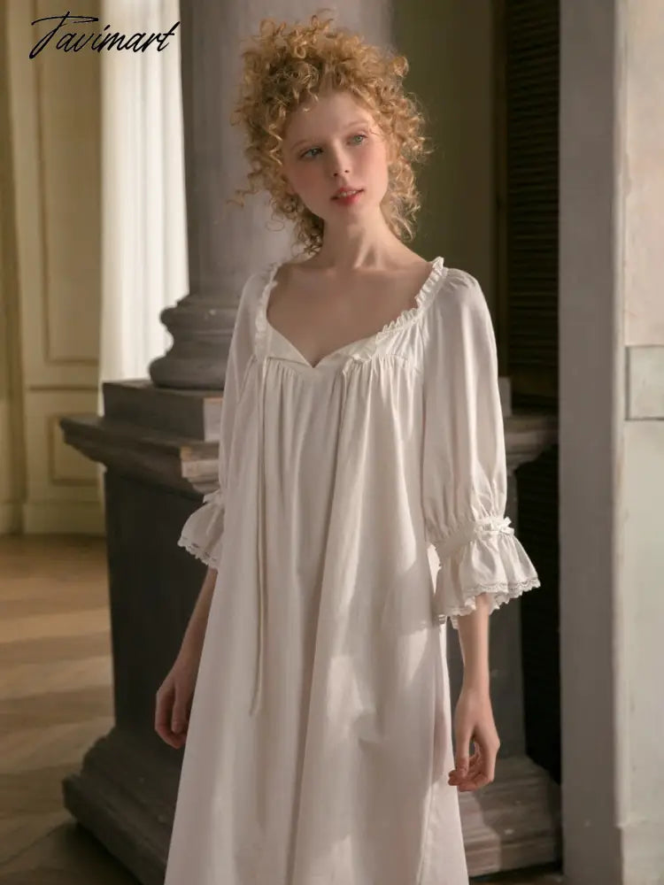 Tavimart Cotton Nightgown Women Sweet Lovely Sleepwear White Nightgown Spring Autumn Leisure Fashion Cotton Sleepwear Original