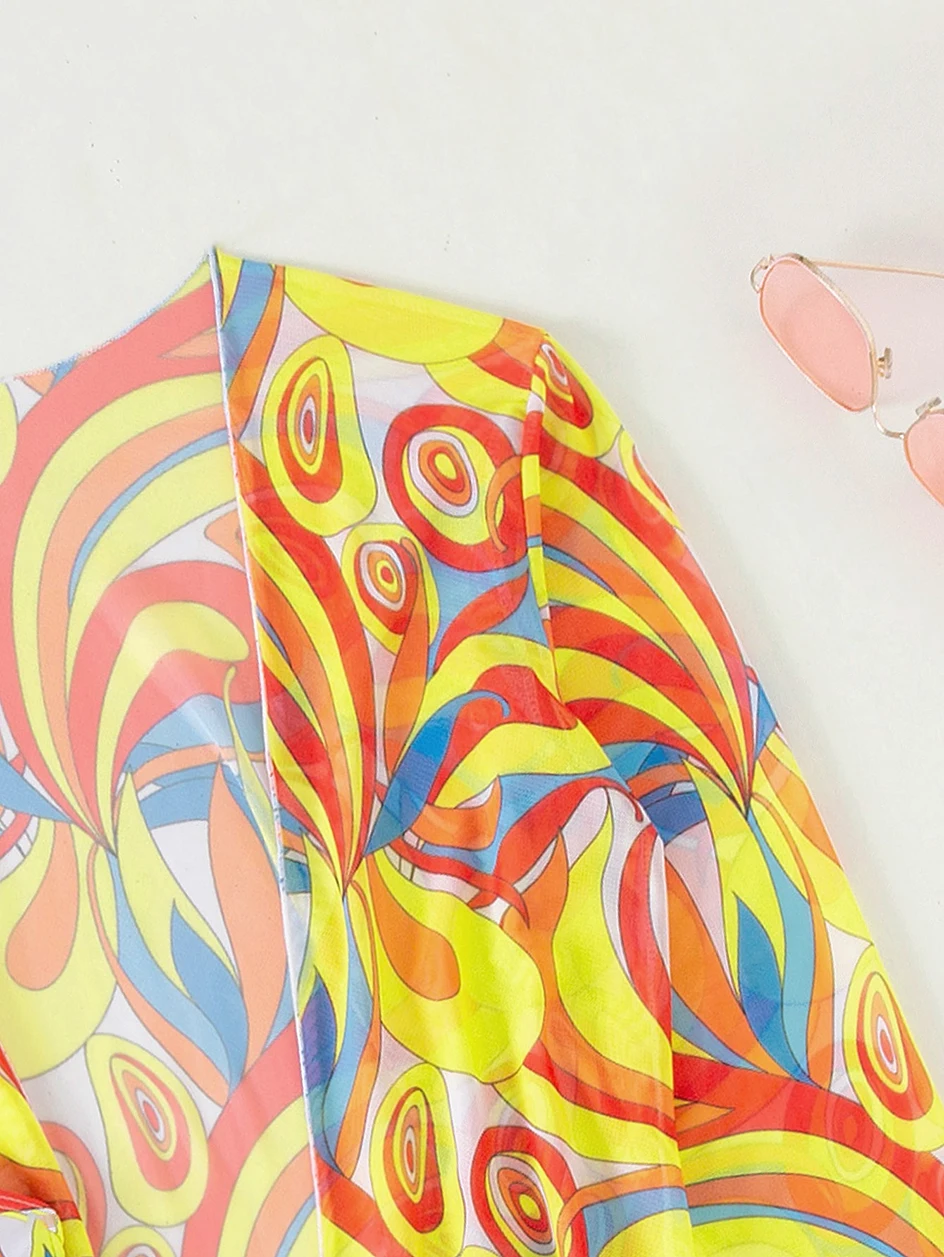Tavimart Waist Bikinis 2023 Sexy 3 Piece Bikini Set Cover Up Swimsuit for Women Long Sleeve Push Up Swimwear Beach Wear Bathing Suit