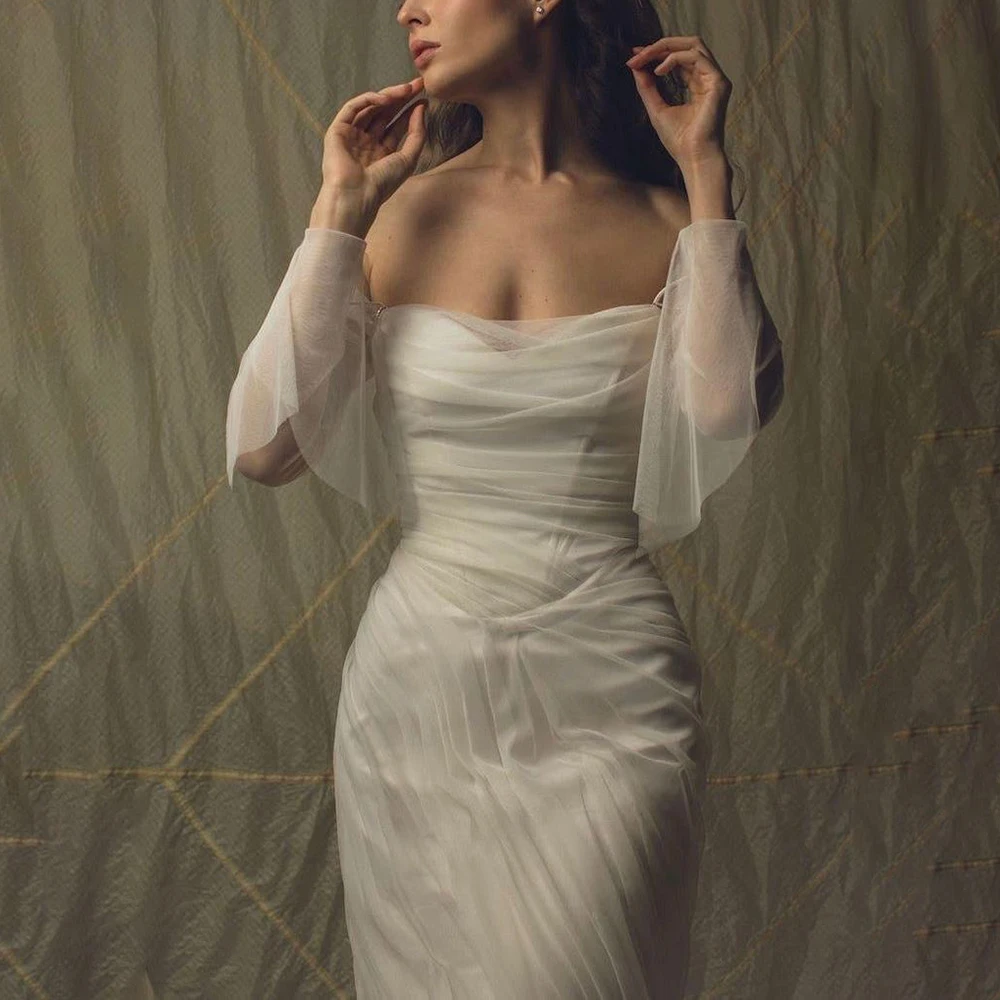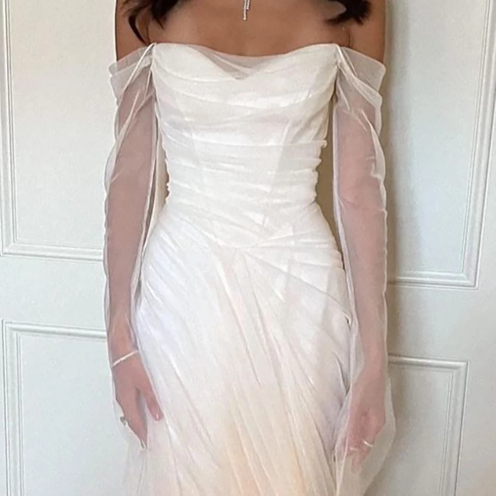 TAVIMART - Simple Chiffon Mermaid Wedding Dresses Off-Shoulder Illusion Elegant Birthday Evening Party Dresses Ethereal Fairy Bridal Gown