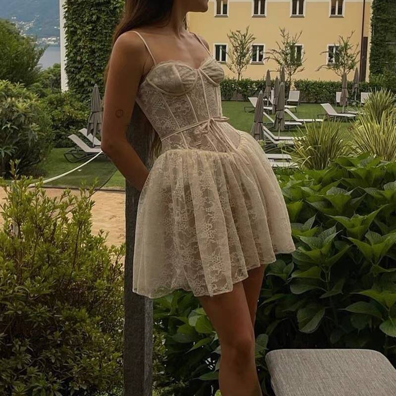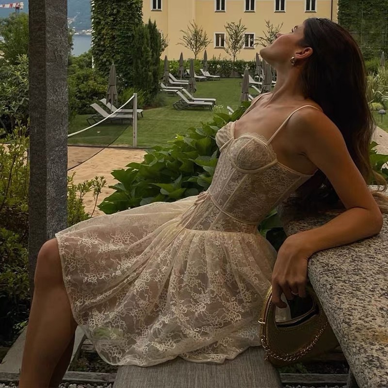 TAVIMART - Women Sexy Elegant Lace Sling Mini Dresses Fashion Low Waist Fit And Flare Party Dress Female Christmas Robe