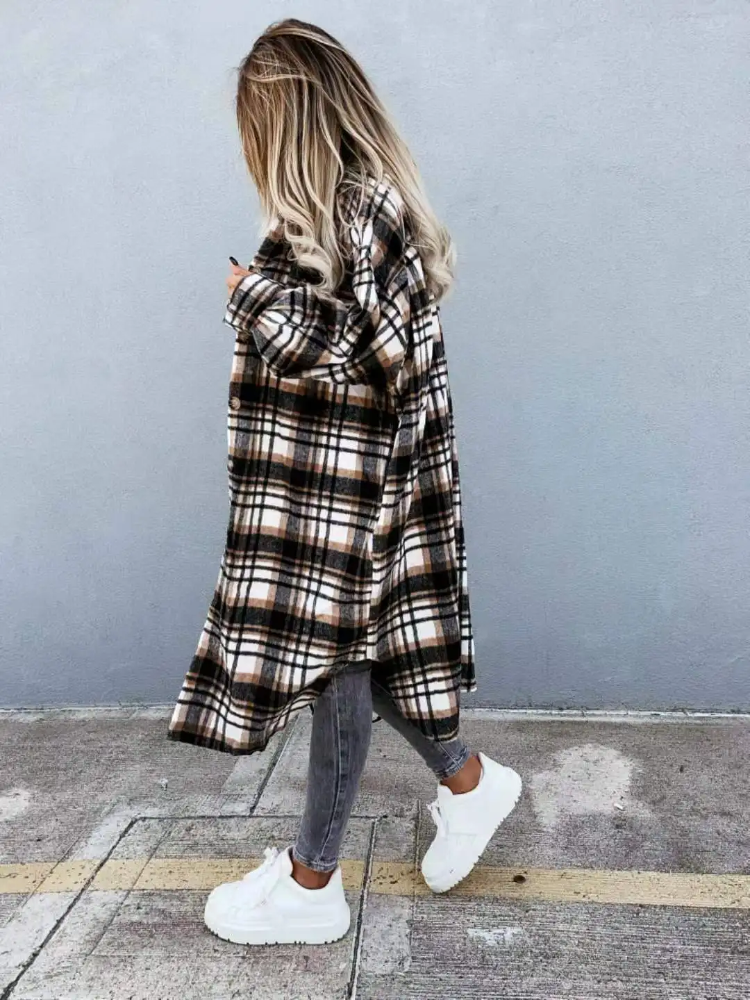 Long Plaid Shirt Coats Women Autumn Oversized Checkered Shirt Female Fashion Vintage Loose Single Breasted Long Cardigans Lady