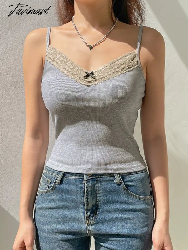 Mqtime Grey Lace Sexy Vintage Y2k Vest Women Bow Beach Party Casual Tank Top Female Backless Designer Korean Clothing Summer New