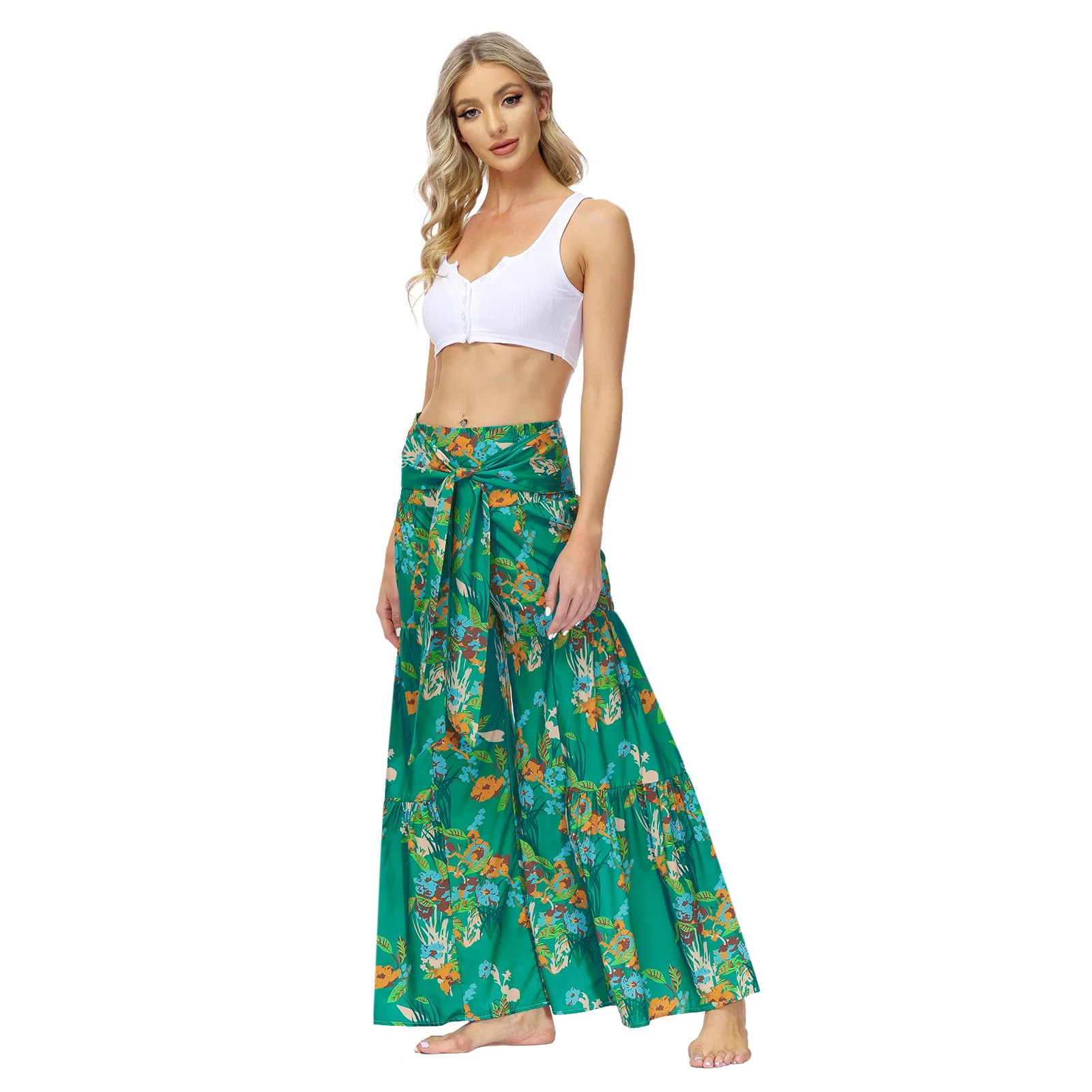 Tavimart New Boho Print High Waist Belted Beachwear Loose Pants Summer Vacation Women Clothing Beach Wear Swim Suit Cover Up A1149