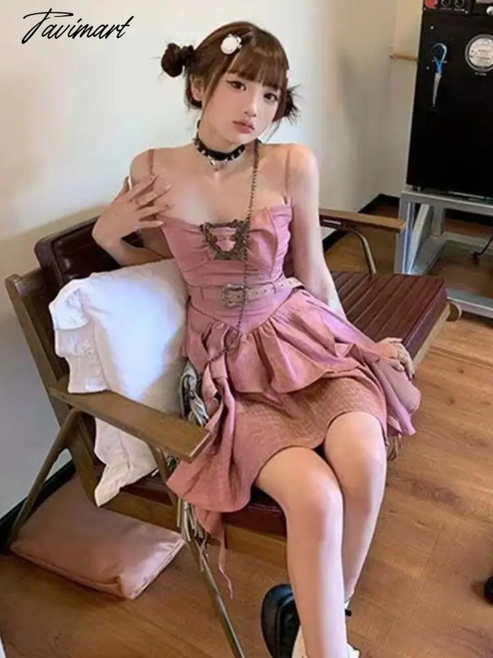 Tavimart Summre One Piece Dress Korean Chic Vingtage Y2k Mini Dress Women Bow Sleeveless Casual Even Party Strap Dress Office Lady