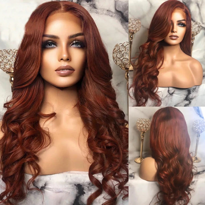TAVIMART - 33# Auburn Body Wave Lace Front Wig 13x4 Red Brown Colored Human Hair Wig Pre Plucked For Women Transparent Lace Frontal Wigs