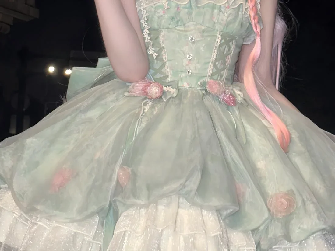 TAVIMART - 3D Backless Girl Sweet Flower Bud Short Skirt Light Quare Neck Fluffy Dresses Bow Dresses Forest Garden JK Lolita Princess Dress