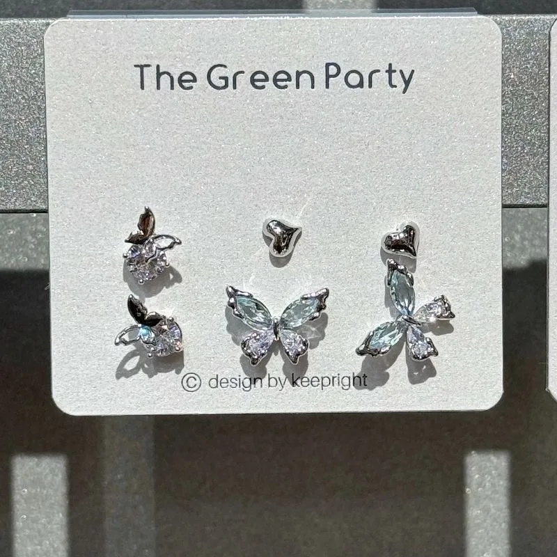 TAVIMART - 6Pcs/set Women Silver Color Rhinestone Butterfly Stud Earrings Y2K Korean Fashion Punk Earring Stud Jewelry Sets Gift
