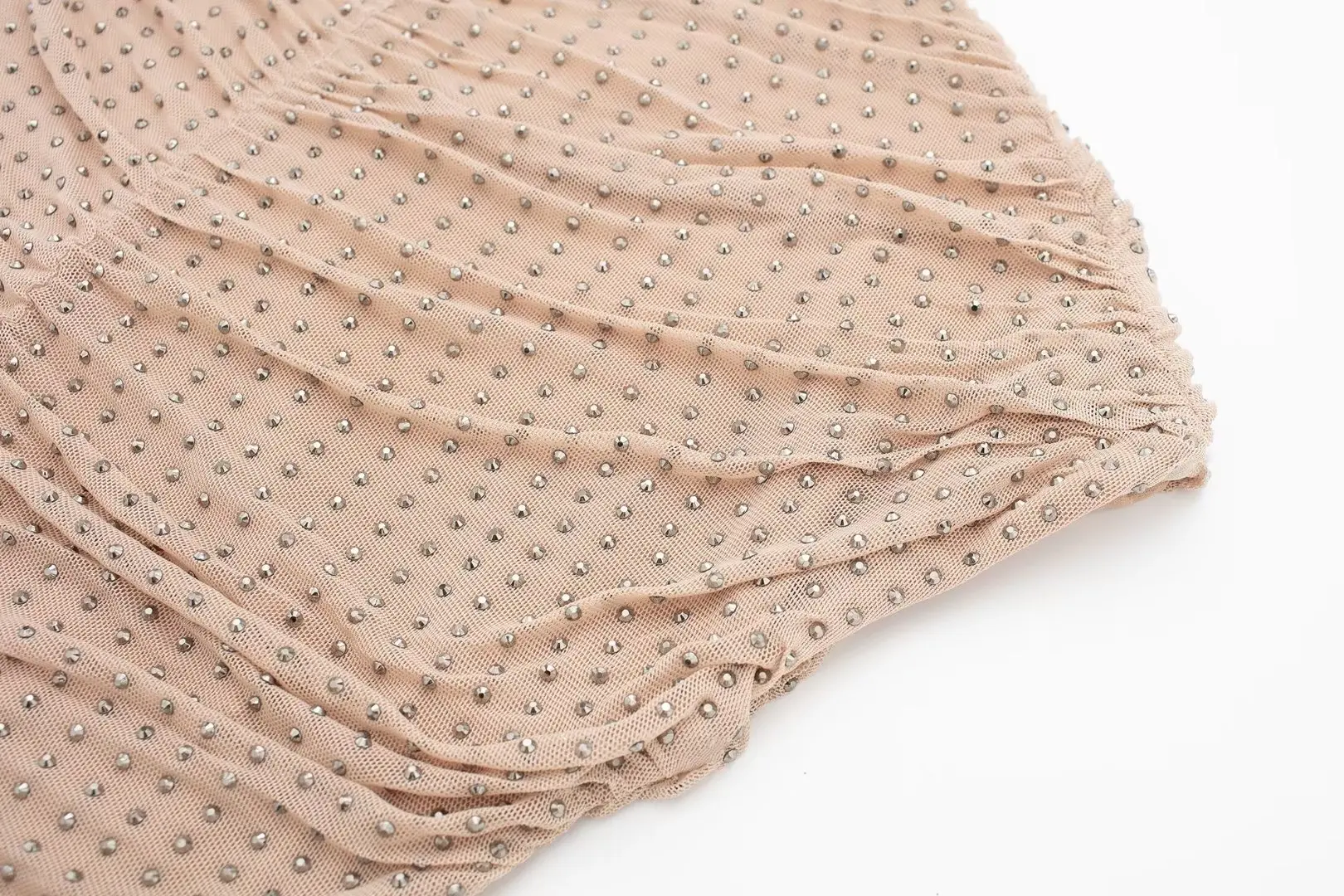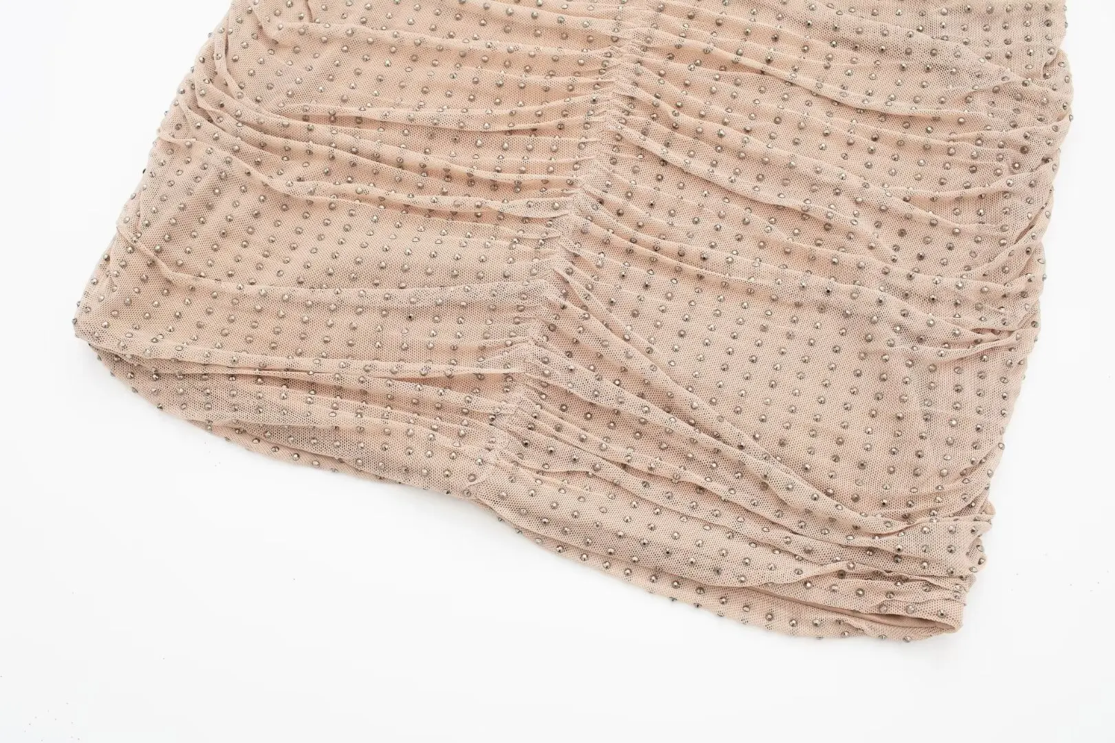 Tavimart Applique Folds Mini Dress New Sexy Fashion O-neck Short Sleeve Mesh Party Vestidos Chic Vintage Elegant Dresses Women