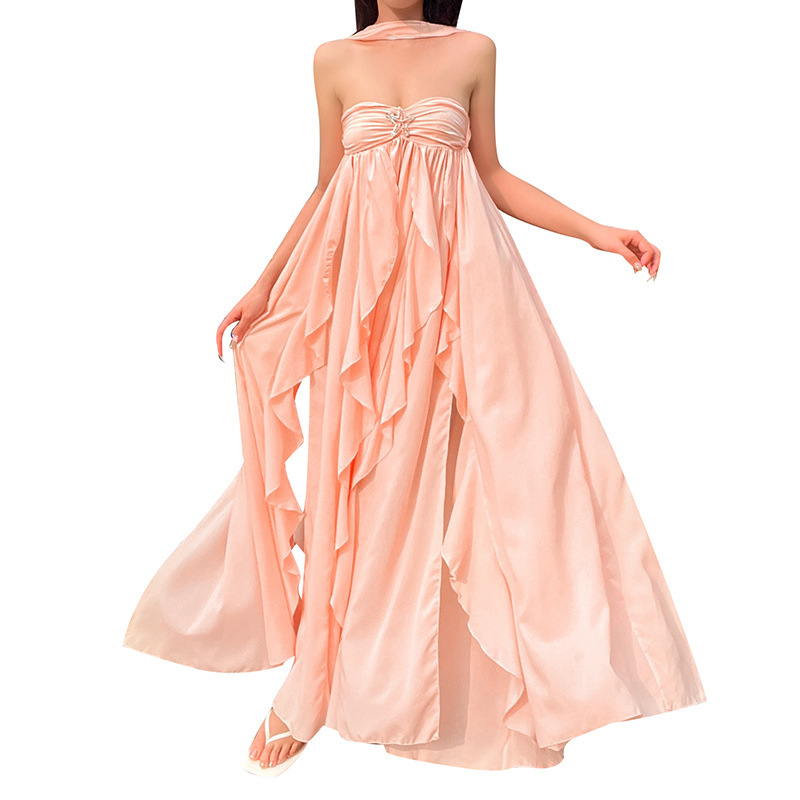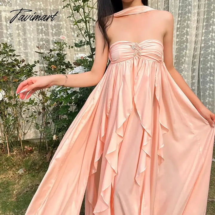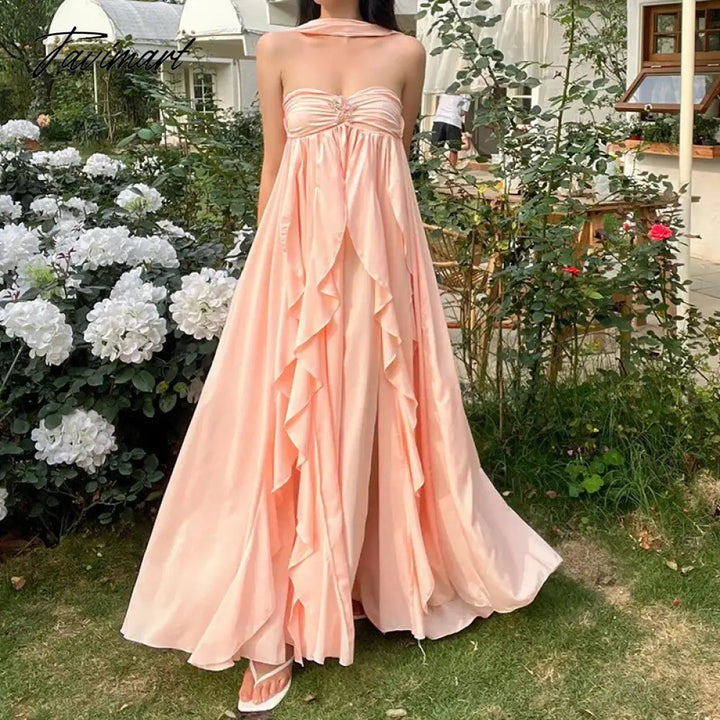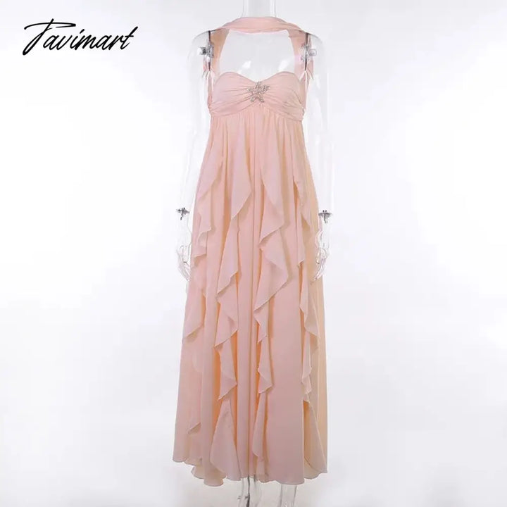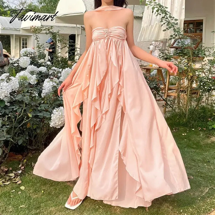 Tavimart Autumn new seaside vacation sexy slim tube top ruffled dress female elegant sexy party club clothing Vestidos