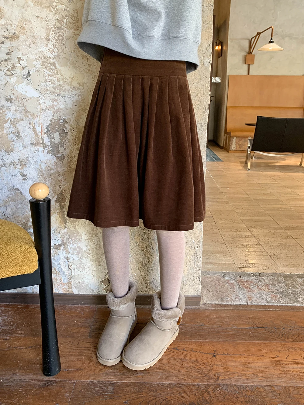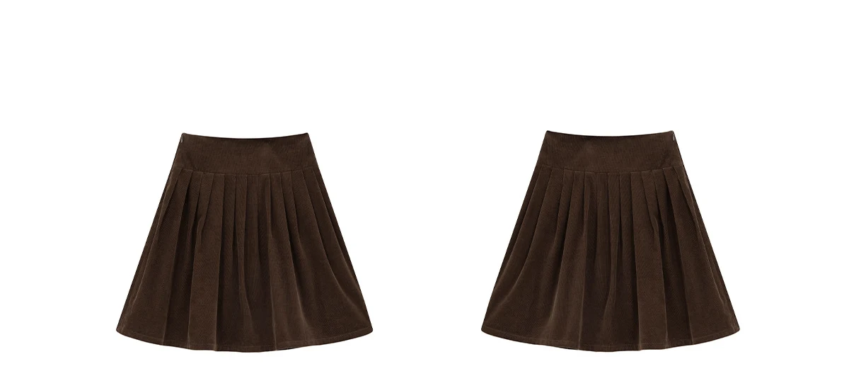 TAVIMART - Autumn Winter New Corduroy Pleated A-line Skirt Women's High Waist Midi Skirts Casual Street Short Skirt