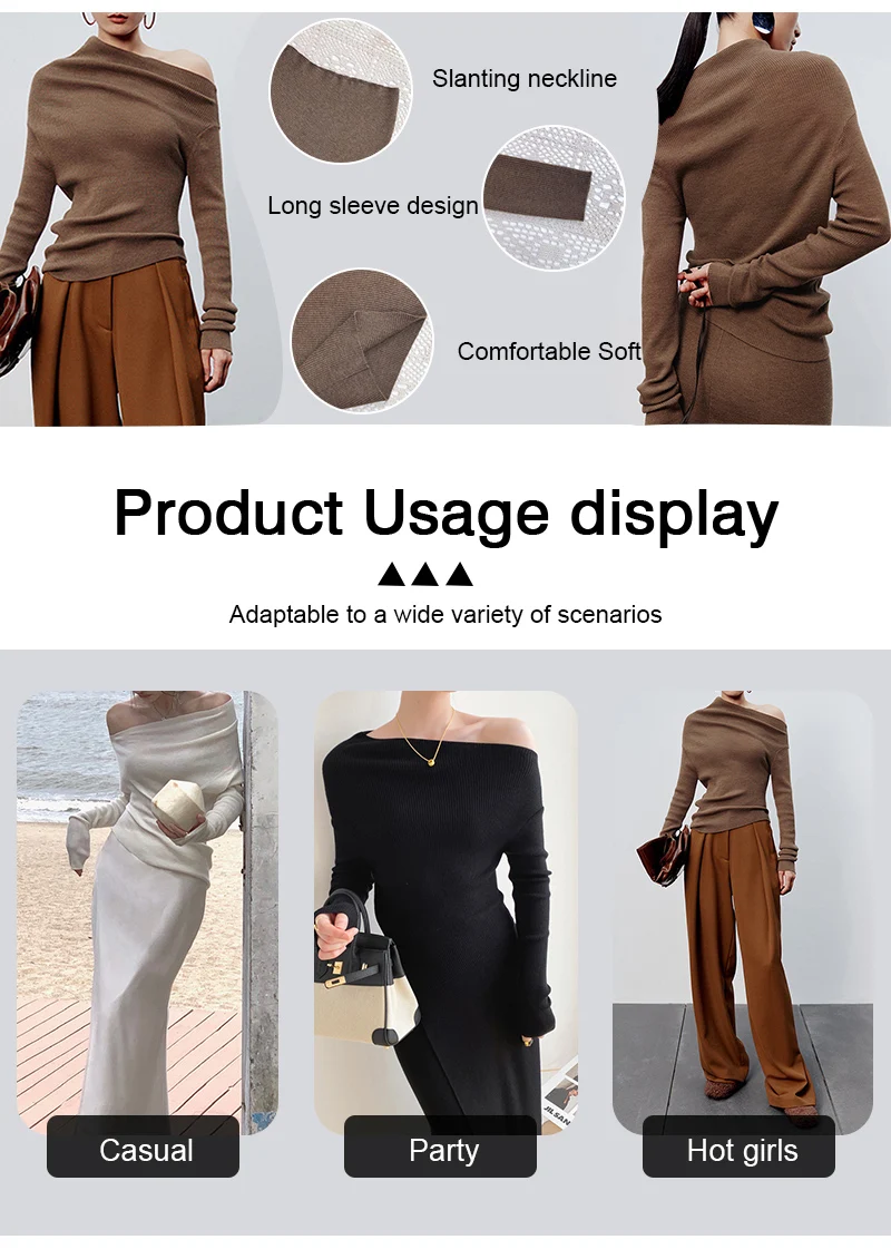 TAVIMART - Autumn Winter Women's Wool T-shirt Top New Solid Color Elegant Long Sleeve Off Shoulder Sexy Slimming Basic Versatile Top