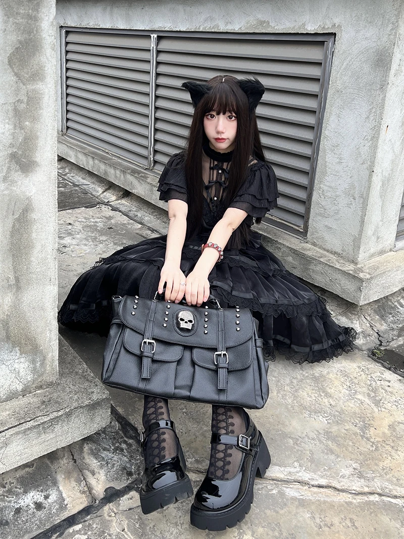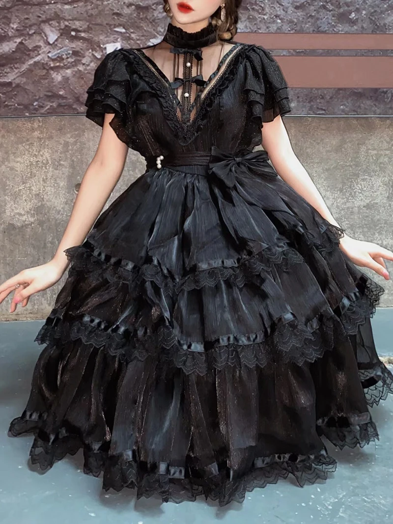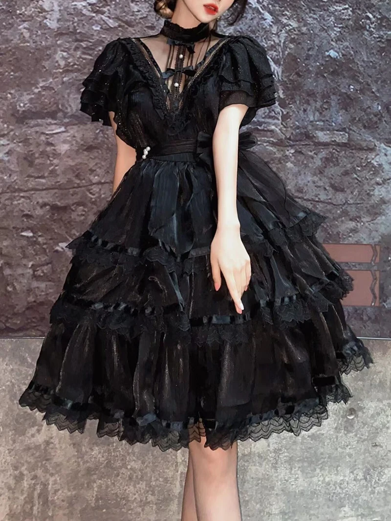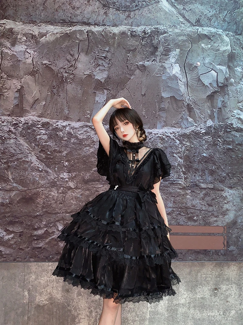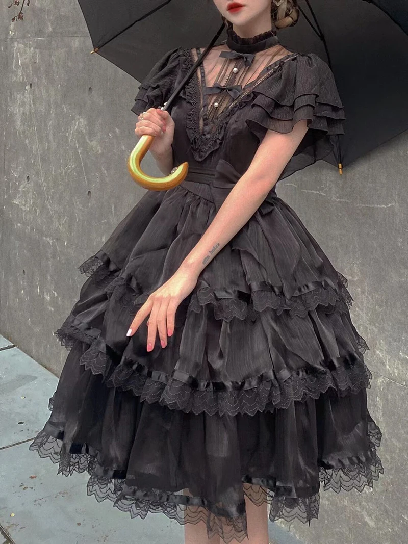 Tavimart Balck White Angelic Pretty Lolita Op Dark Gothic Girl Dress Flower Wedding Daily Short Sleeve Op Fluffy Vestido Tea Party