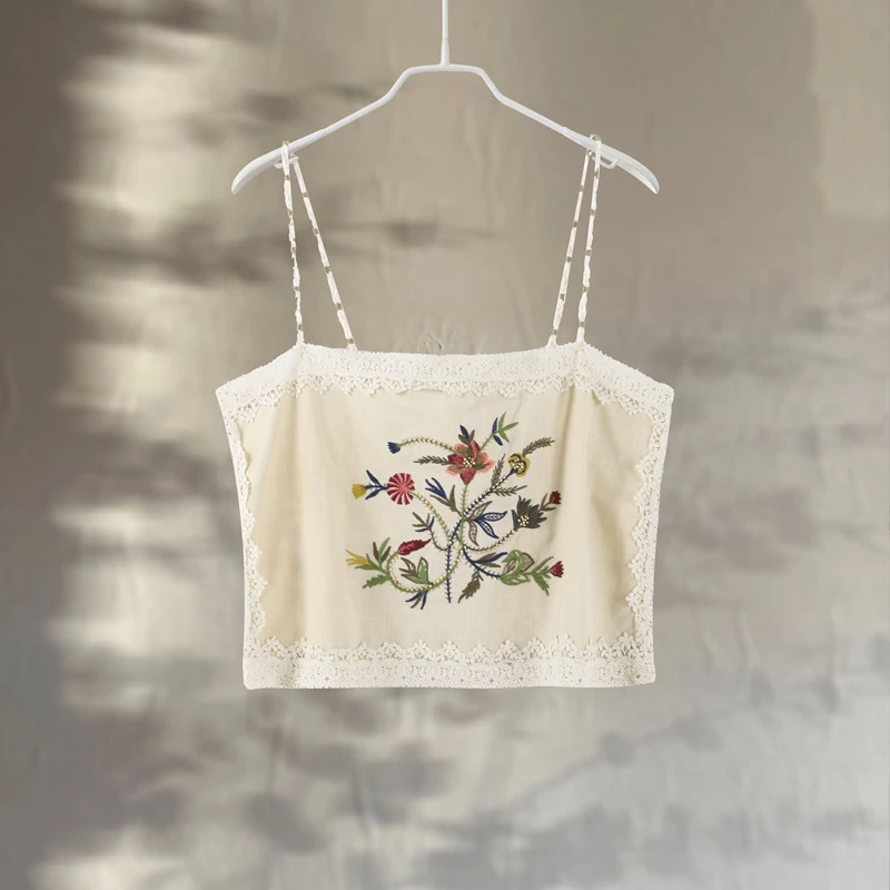 TAVIMART - Beach Embroidery Top Shorts Set Women Vacation Sleeveless Crop Vest Lace Up Pocket Short Pant 2025 Summer Lady Slim Outfit