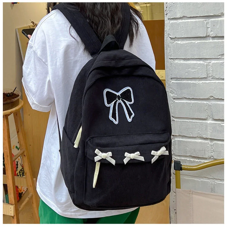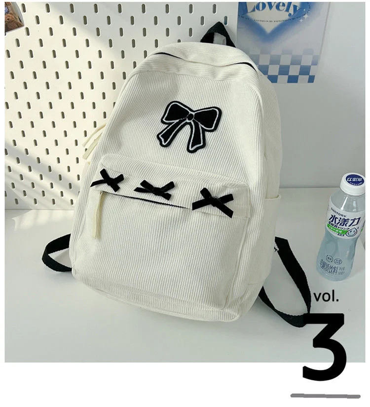 TAVIMART - Bow Backpack Japanese Korean Girls Nylon Large Capacity Backpack Corduroy Zipper Student Unisex Lightweight Backpack New