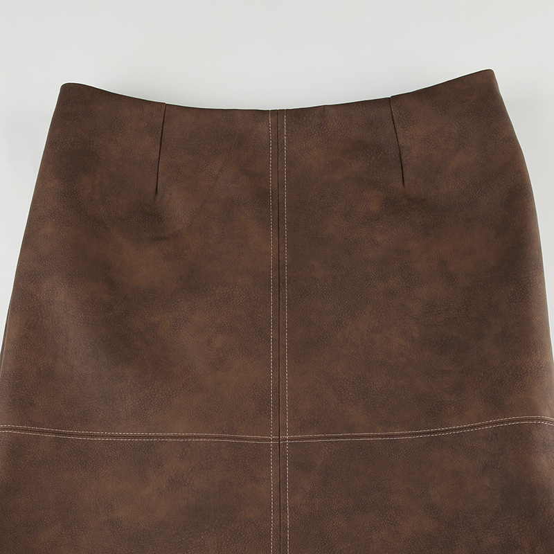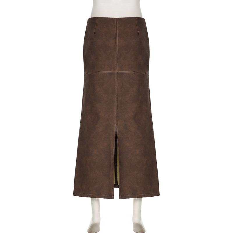 TAVIMART - Brown PU Leather Maxi Skirt Fall Winter Sexy Back Split Long Skirt Low Waist Vintage Y2k Clothes Women Falda