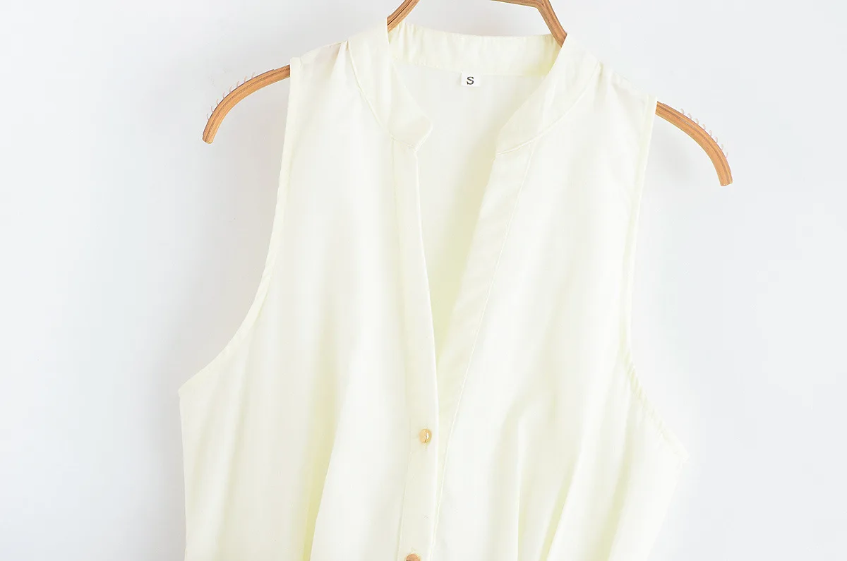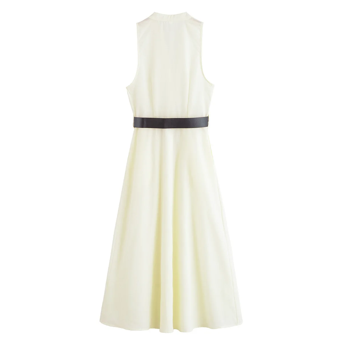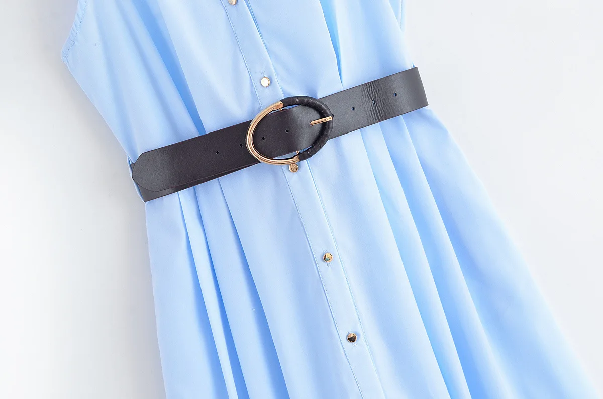 TAVIMART - Casual Fashion Women's Dress Solid Color Round Neck Sleeveless Single Breasted Drape Belt Dress New Commuter Pleated Dress