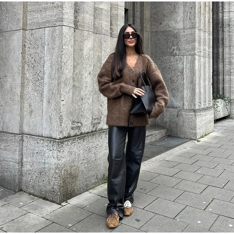 TAVIMART - Casual Knitted Cardigan Women V-neck Long Sleeves Single Breasted Female Knitwear 2025 Spring New Fashion Loose Lady Sweaters