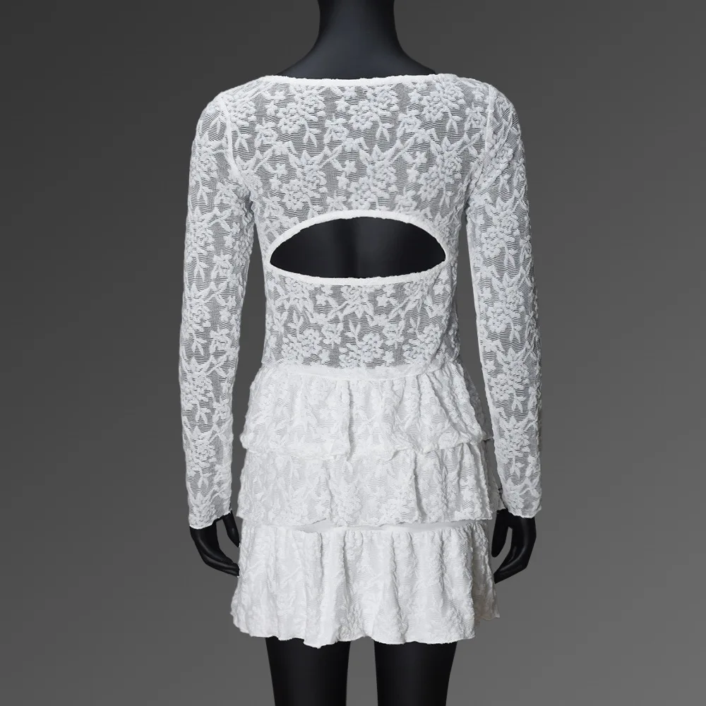 TAVIMART - Casual Lace Two Piece Dress Set Women Wrap Skirt See Through Crop Top Fashion Design Outfit 2025 Summer Female 2 Piece Skirt Set