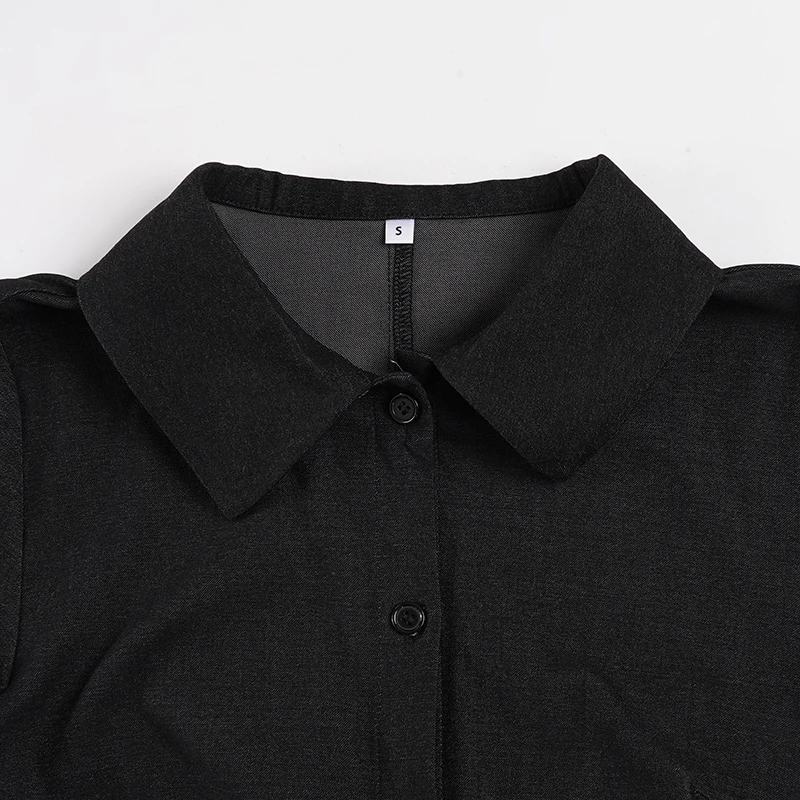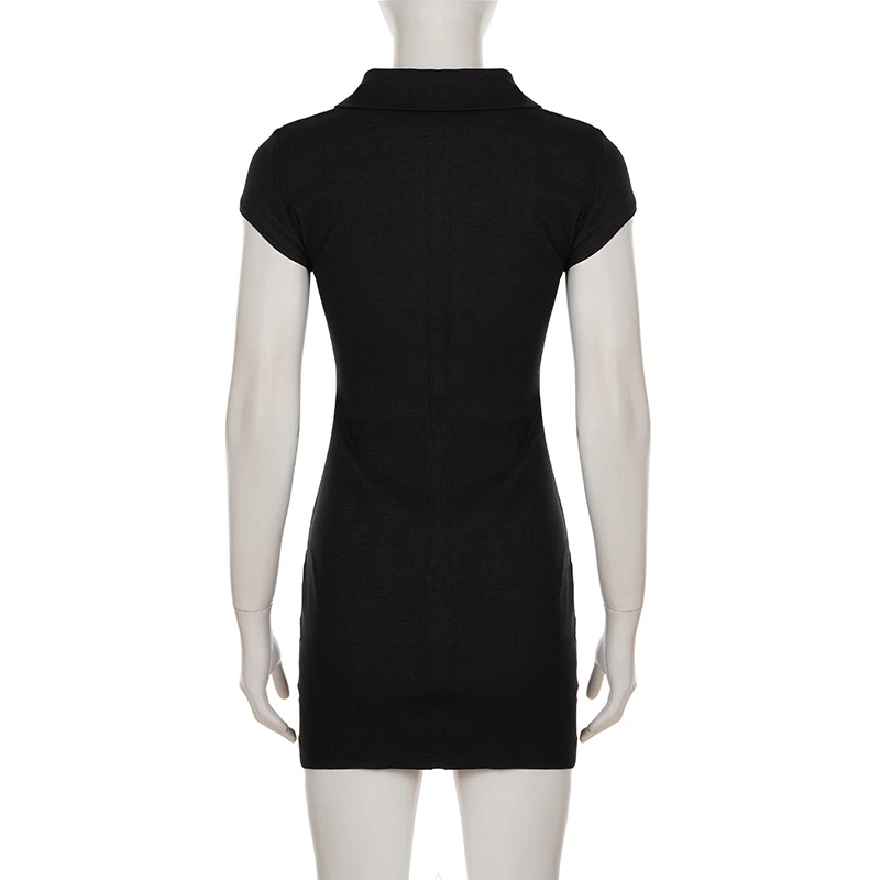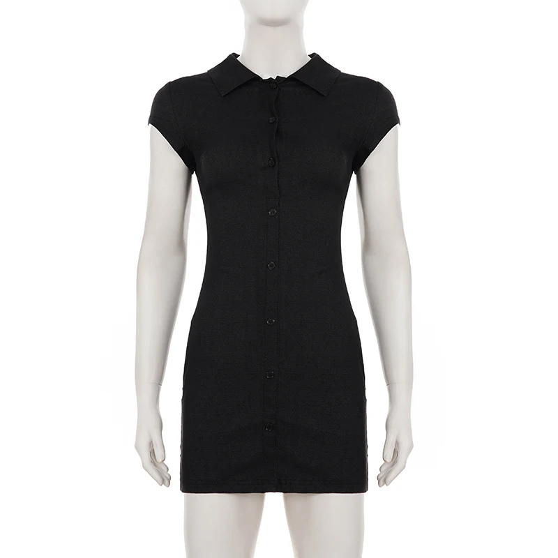 TAVIMART - Casual Slim Denim Bodycon Dress Basic Turn-Down Collar Short Sleeve Mini Dresses For Women 2025 Summer Fashion Ladies