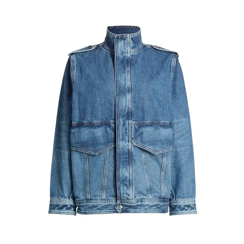 TAVIMART - Casual Women Denim Coats Solid Stand Collar Single Breasted Full Sleeve Pockets Female Jackets 2025 Autumn Lady Outwears New