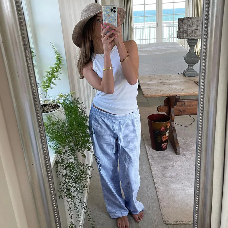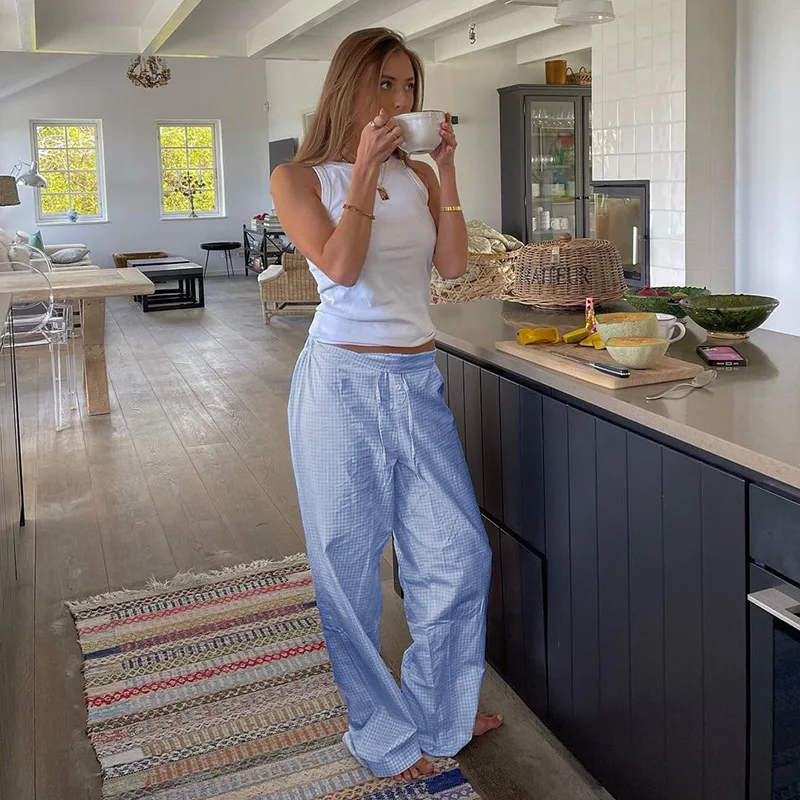 TAVIMART - Checkered Loose Casual Long Pants For Women's Fashion Lace Up Button Versatile Low Rise Trousers Lounwear Y2K Outerwear