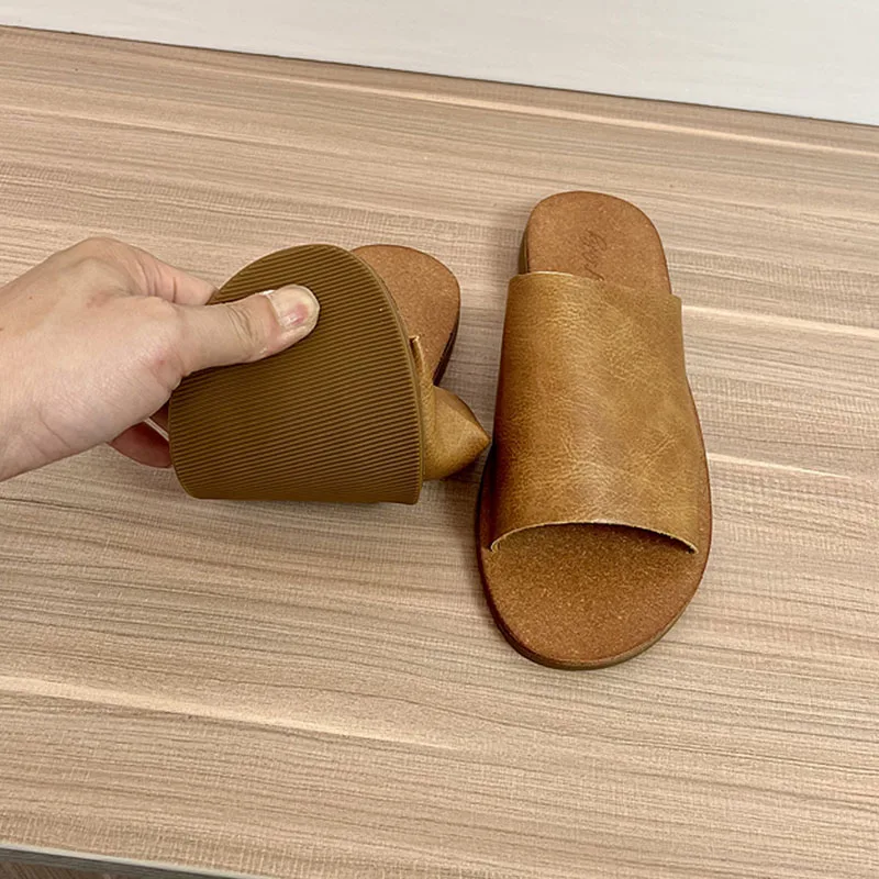 TAVIMART - Classic Women's Slippers 2024 New Summer Leather Beef Tendon Sole Flats Designer Fashion Slippers Women Sandals Home Flip Flop