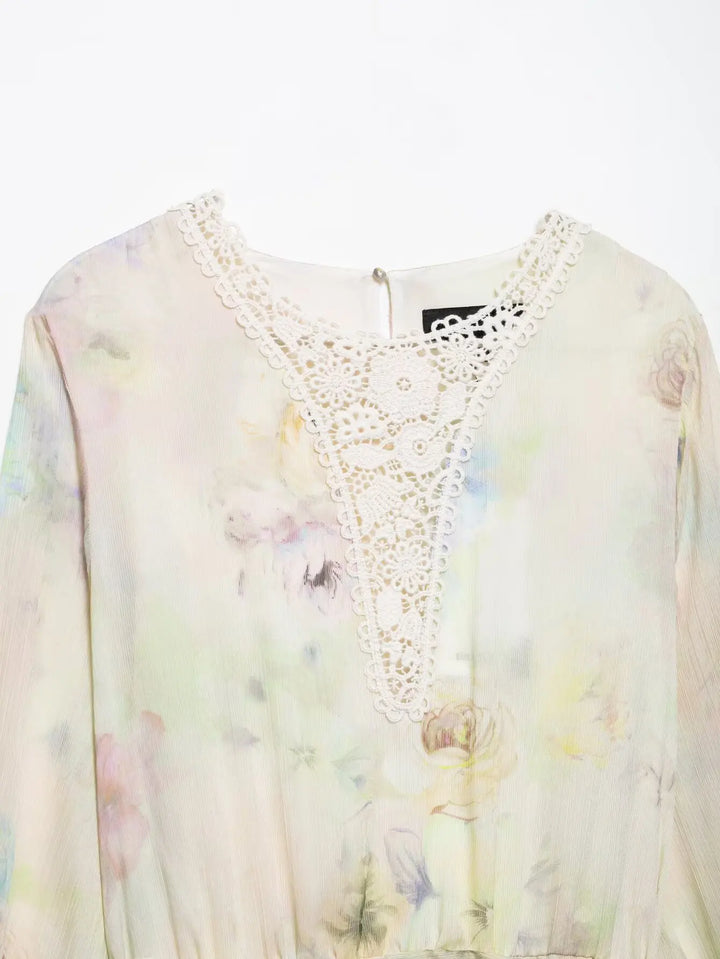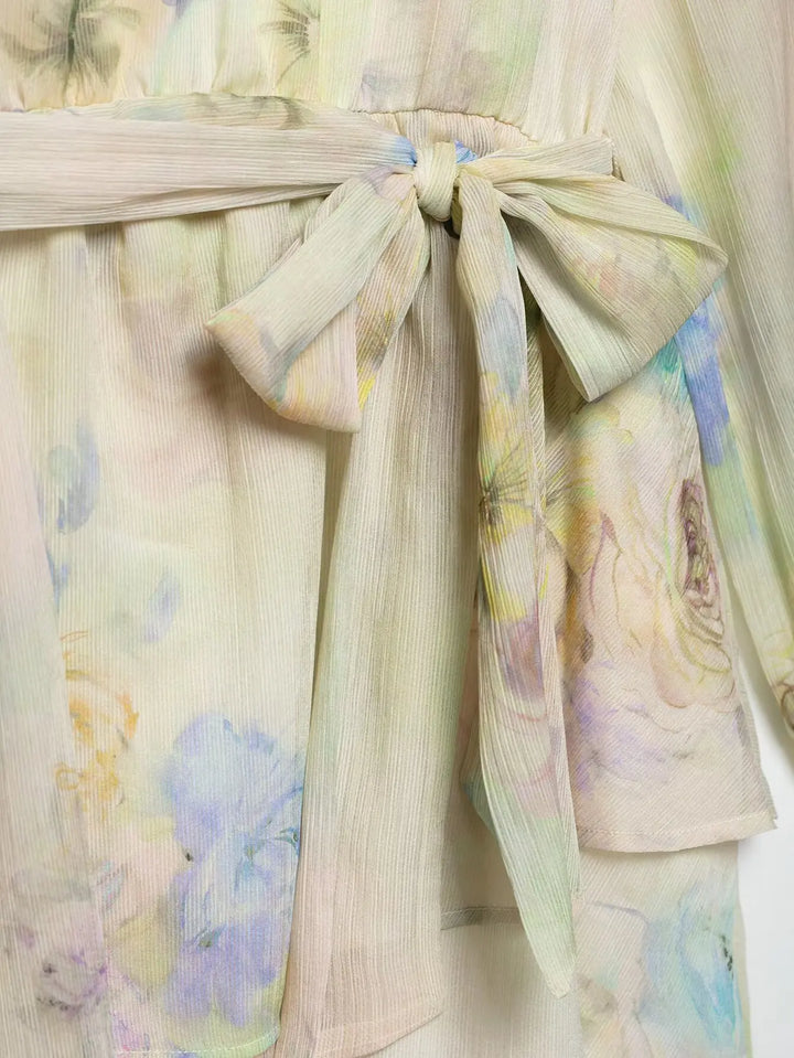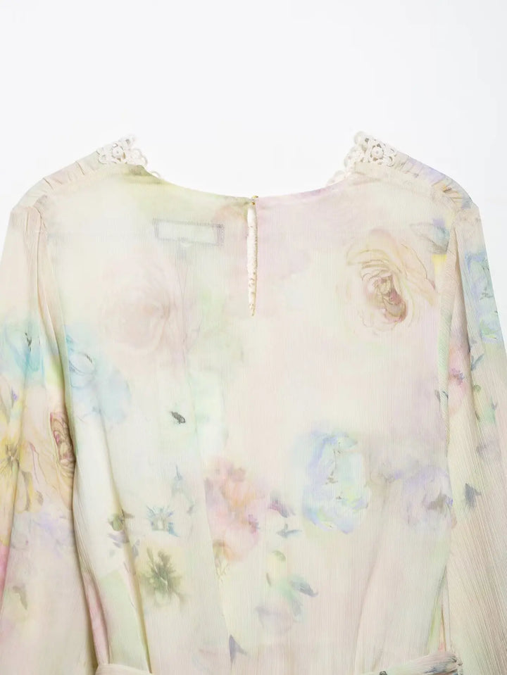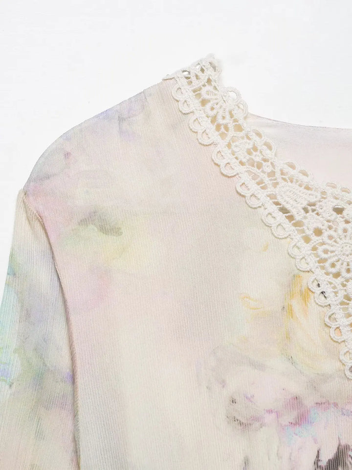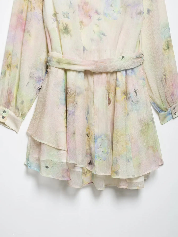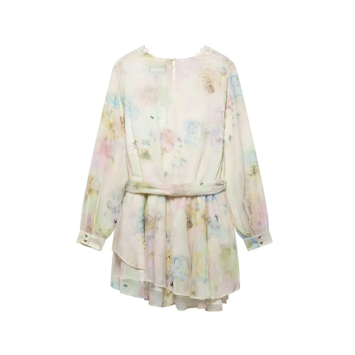 TAVIMART - Crochet Printing Short Dresses Women Ruffles Elegant Dress Woman Long Sleeve Mini Dress Female Evening Party Dresses