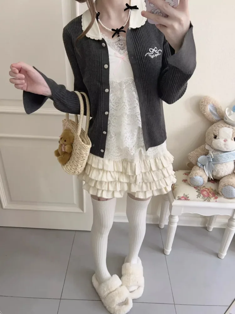 TAVIMART - Cute Multilayer Lace Crop Top for Sweet Girls Summer Lolita Style Cropped Bow Decoration Bottoming Tops Camis Kawaii Clothes