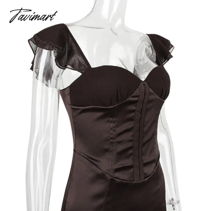 Tavimart Dresses for Women Summer Bodycon Evening Party Dresses Sexy Vintage Ruffle Dress Chiffon Sleeve Dress Birthday High Quality