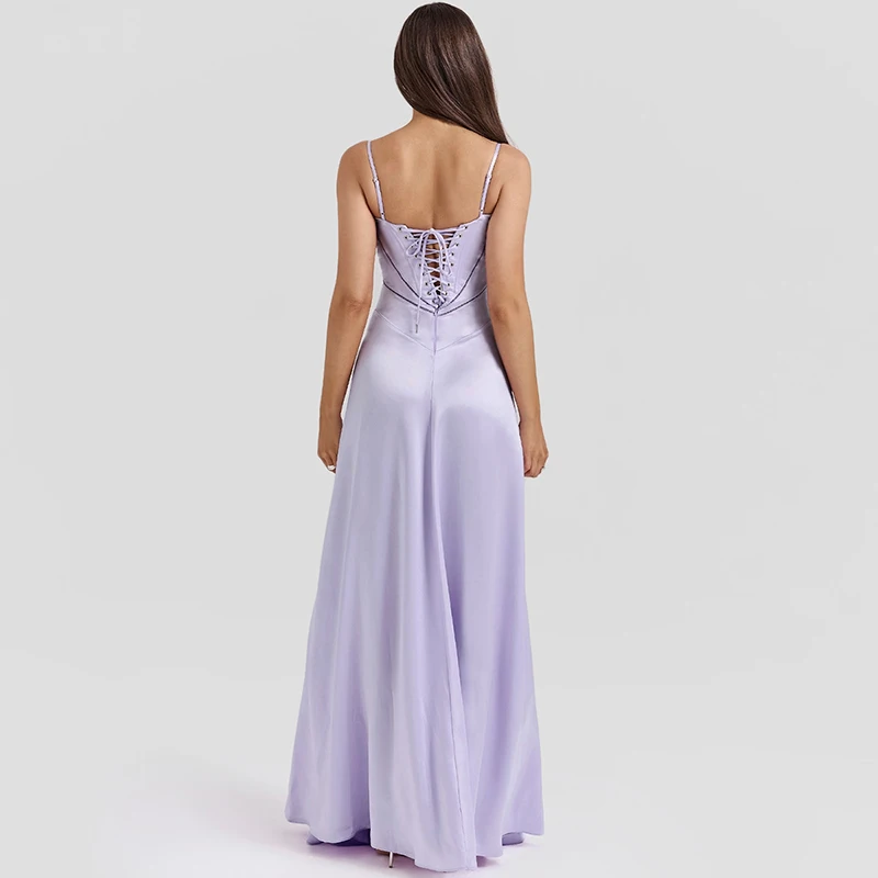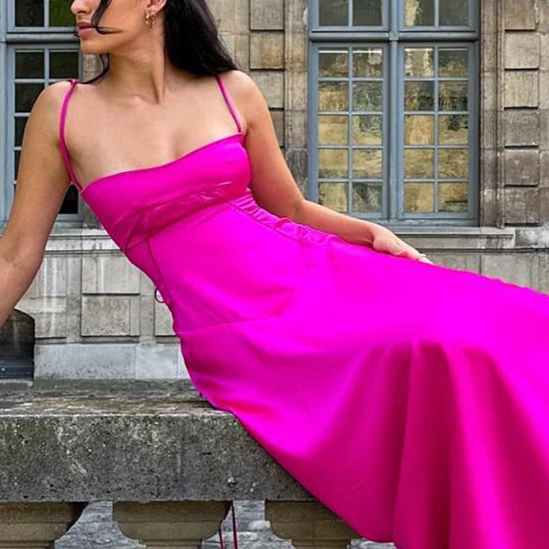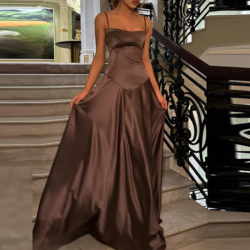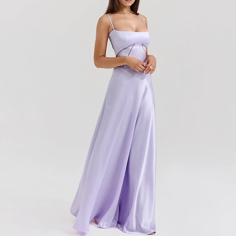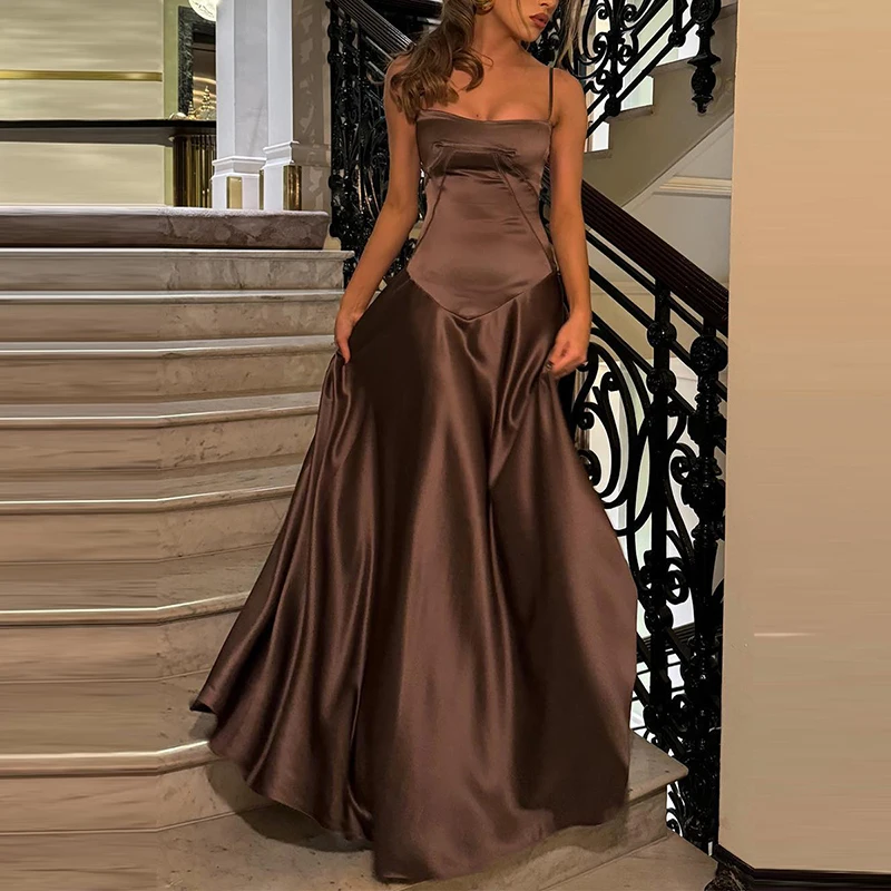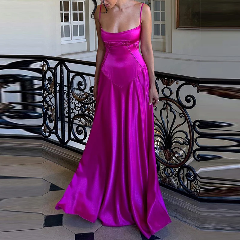 TAVIMART - Elegant Temperament Beach Suspender Dress New Fashion Backless High Waist Banquet Dress Casual Multi-color Slim Satin Long Dress